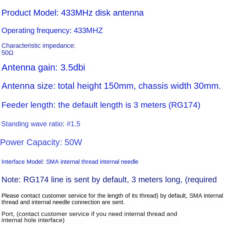 433MHz SMA Antenna with Gain 3.5dBi, Frequency Range 433MHz, Output Impedance 50, VSWR ≤2, Working Voltage 0-5V