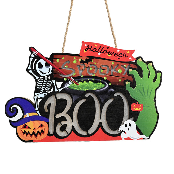 Halloween Decorations New Hanging Wooden Crafts Ghost Festival Party Pendant Doorplate Halloween Light Plate