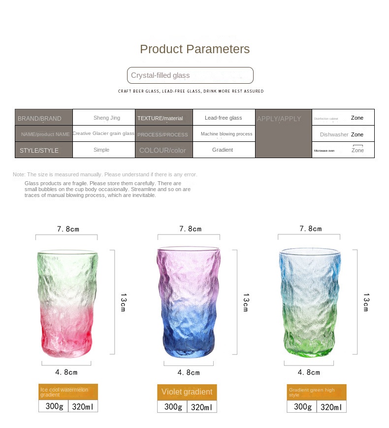 Creative Glacier Glass Water Bottle with Gradient Color for Home Use, Beer, Tea, Breakfast, Juice