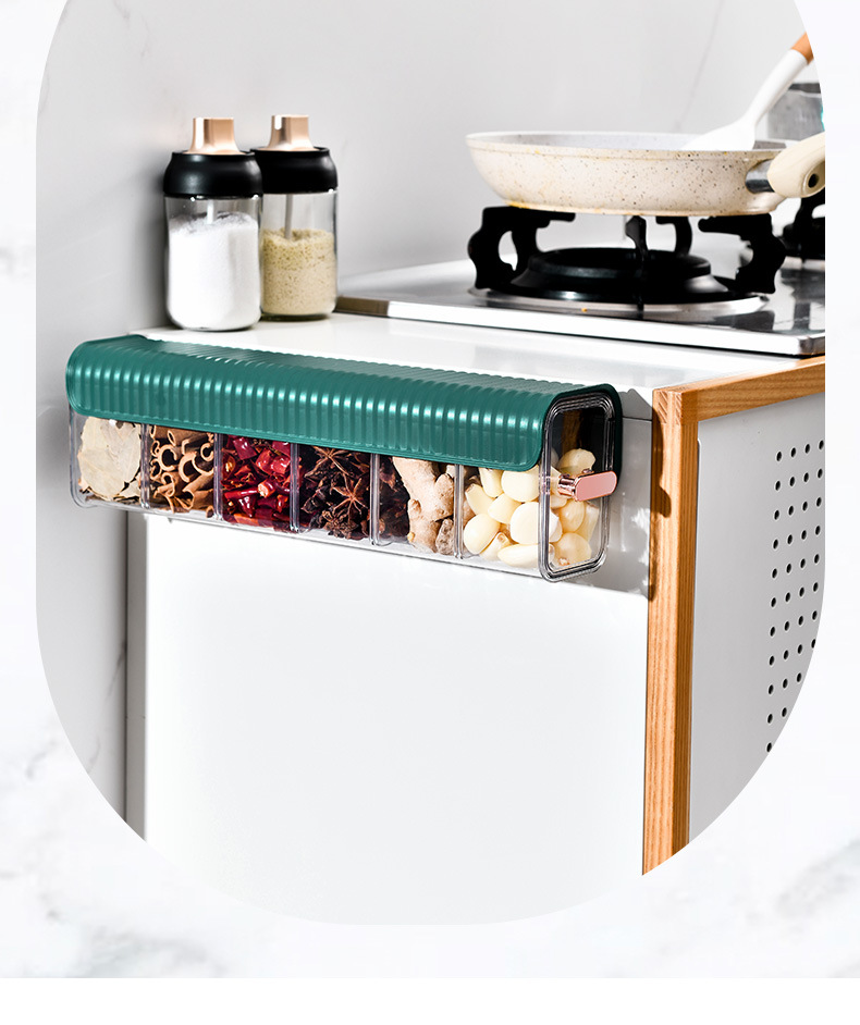 Kitchen Wall Mounted Spice Rack with 5 Compartments, Lightweight and Portable
