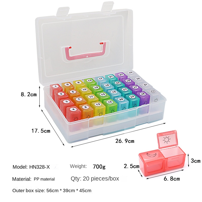 Portable Travel Pill Box with 100% New Material, Moisture-Proof and Leak-Proof, with Grid Divider, Suitable for Home and Outdoor Use, 269*175*82mm
