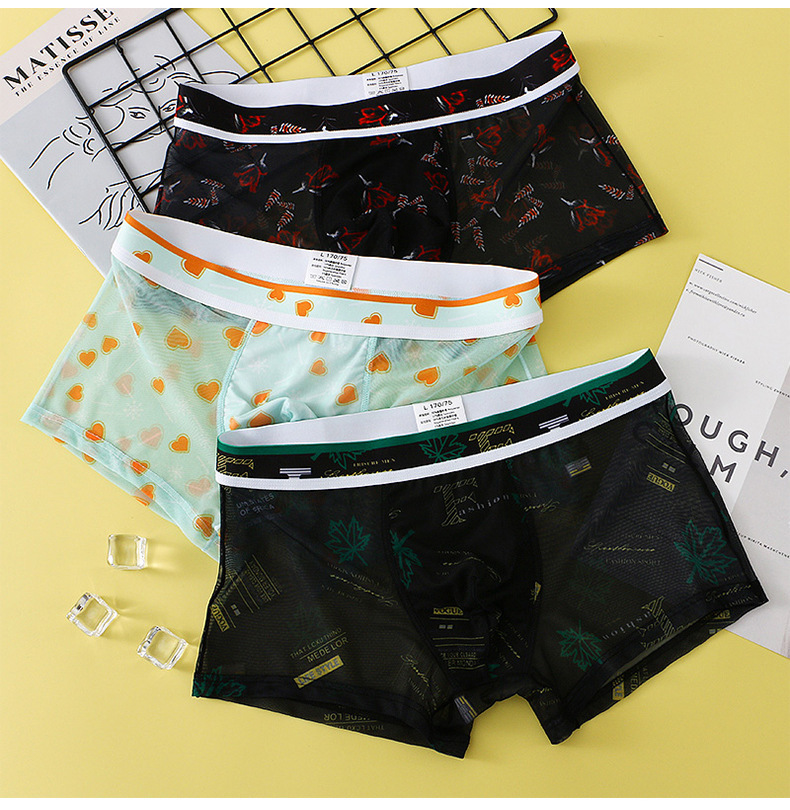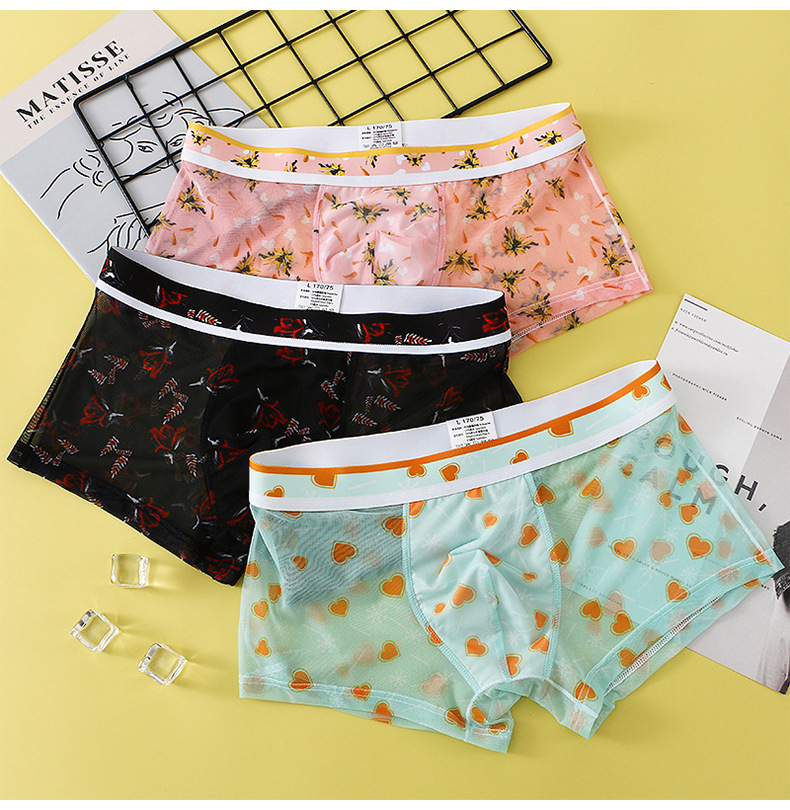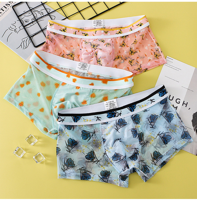 Men's Ultra Thin Floral Ice Silk Boxers with 90%-95% Cotton for All Seasons