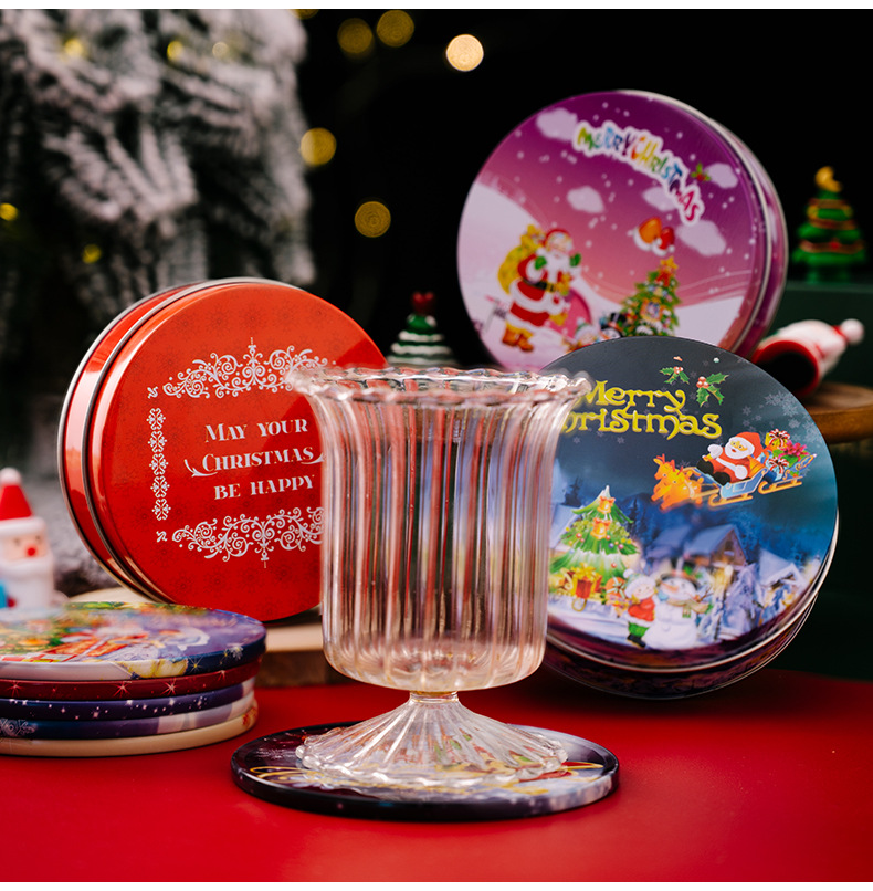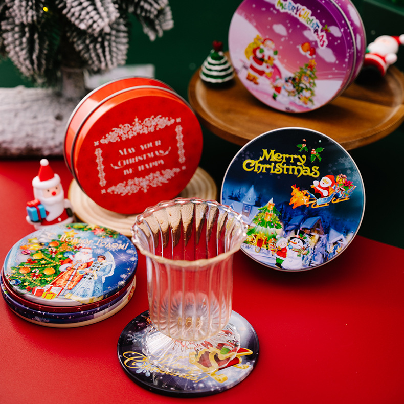 New Christmas Table Decoration Cartoon Print Cast Iron Coaster, Create Festive Atmosphere for Christmas Season