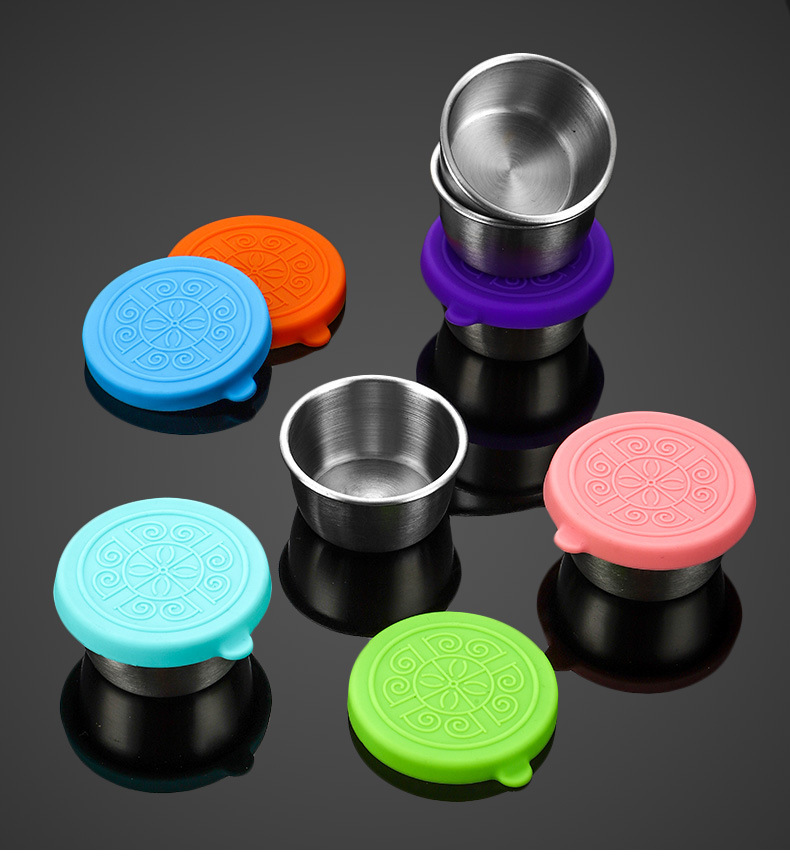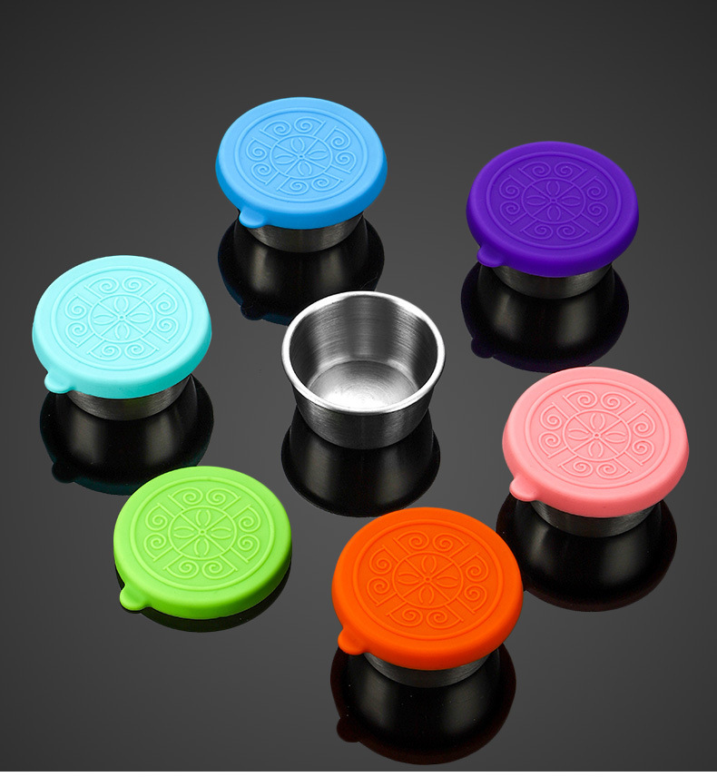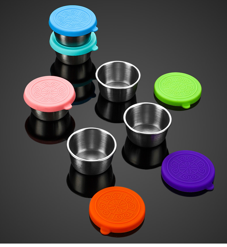 40ml Stainless Steel Sauce Cup with Lid, Silicone Sealing, Leakproof, for Salad, Tomato Sauce, Lunchbox, Seasoning Plate