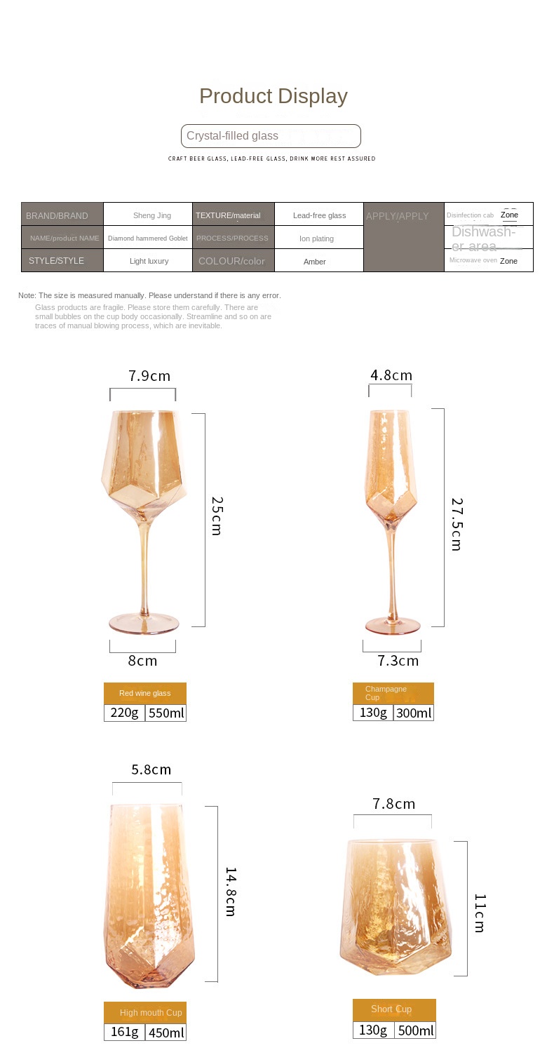Creative Hammer Pattern Amber Champagne Glass Wine Cup Crystal Red Wine Cup Champagne Cup Juice Cup