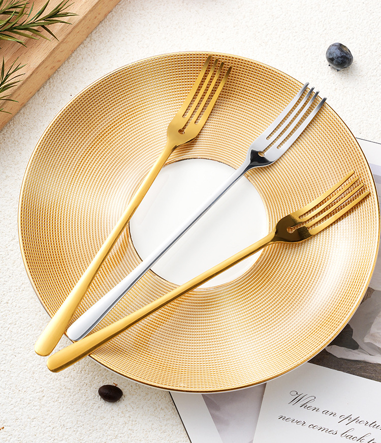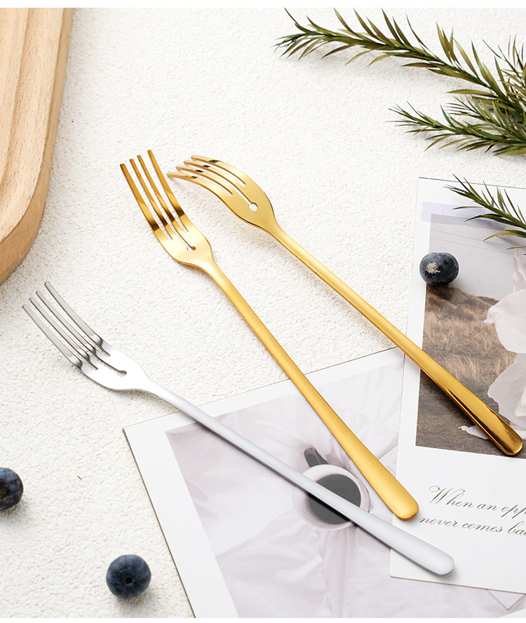 Popular Round Hole Four-tooth Fork Stainless Steel Fruit Fork Hotel Restaurant Beef Fork Fruit Salad Fork Dessert Fork