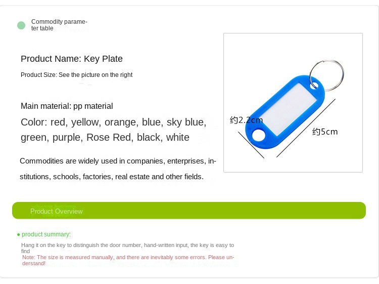 Colorful Plastic PP Key Card luggage tag hotel number classification keychain