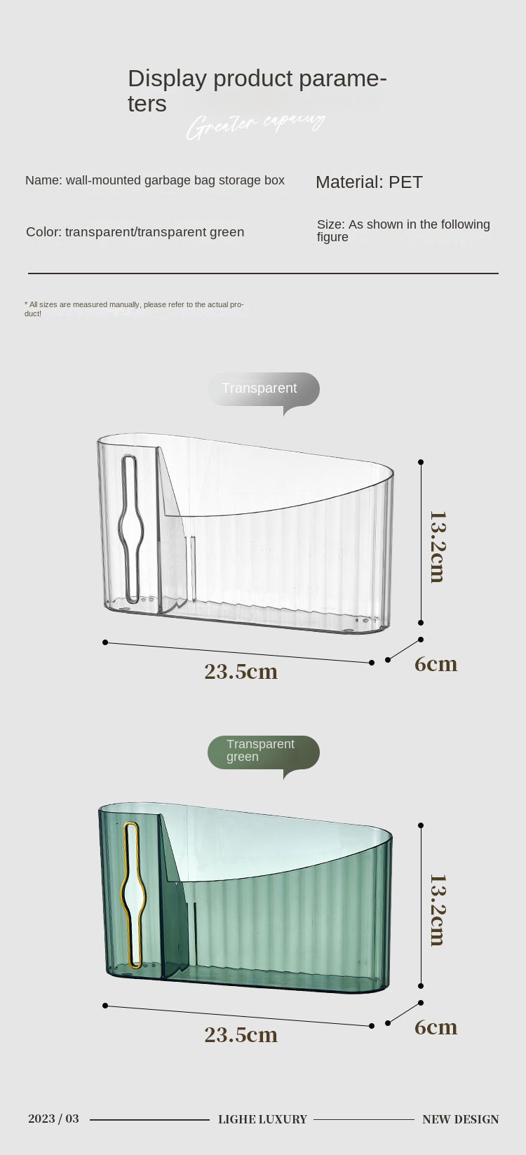 Transparent Large Capacity Garbage Bag Organizer with No Punching Wall Hanging Box for Home Use