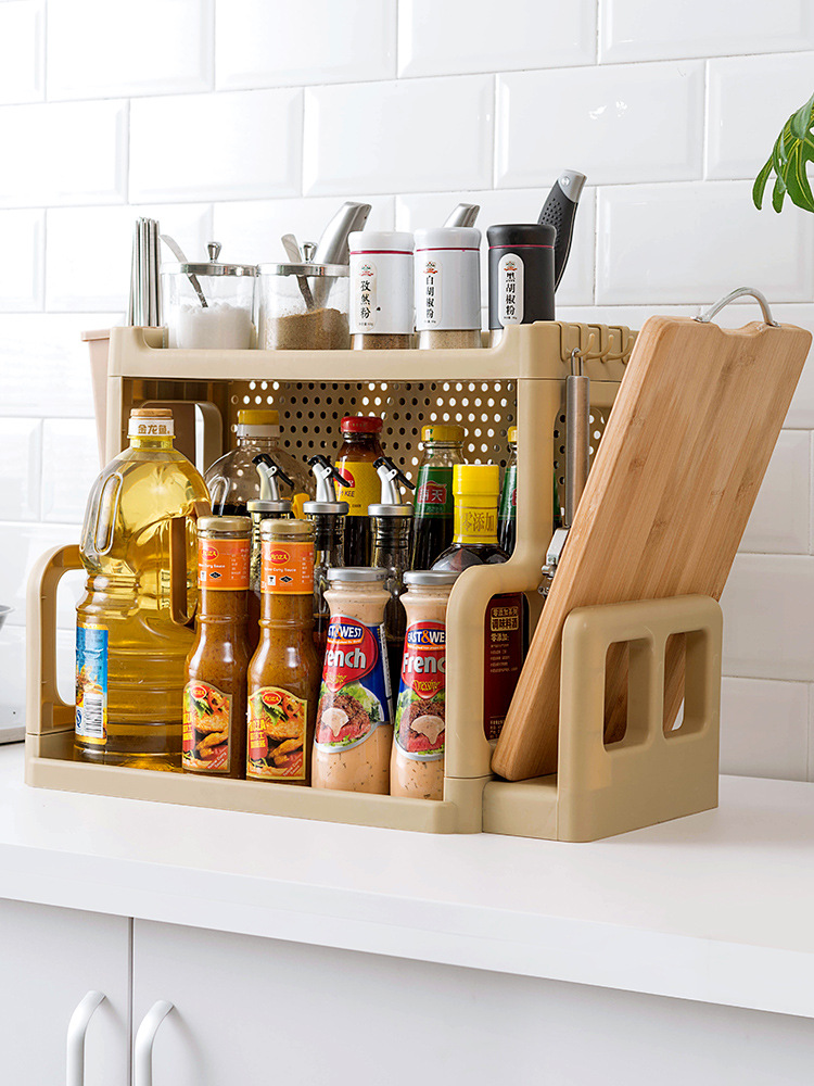 Multi-Functional Kitchen Shelf with 100% New Material, 2 Layers, Modern and Simple Design, and Portable