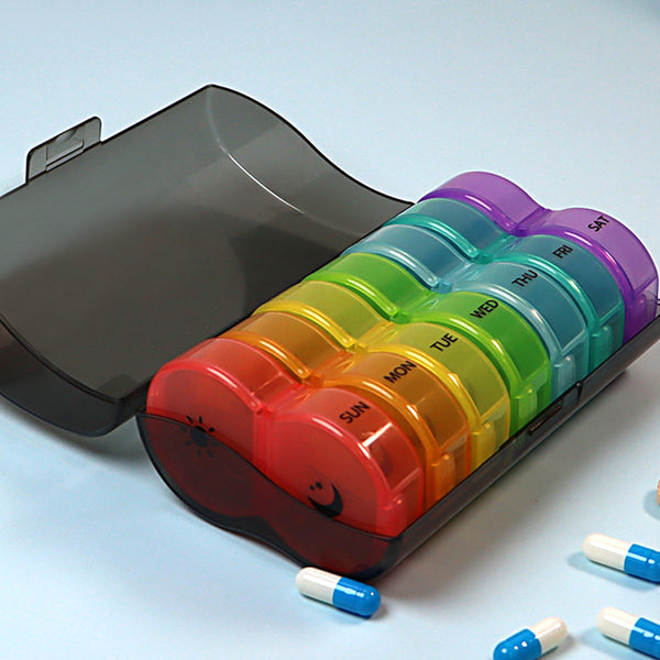 7-Day Round Mini Travel Pill Box with 14 Compartments, Portable and Separable Weekly Morning and Evening Pill Box