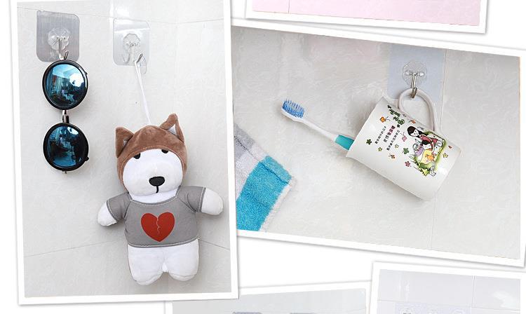 - ["Strong adhesive for long lasting use","Transparent design for modern style","Max load of 5kg for heavy duty use","Easy to install and remove","Suitable for multiple surfaces"]