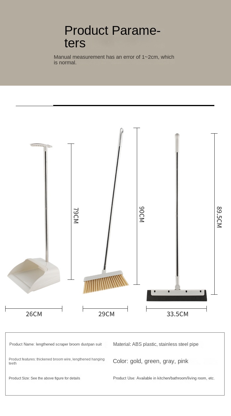 Household Broom & Dustpan Set - Non-Stick Head, Plastic Cleaning for Home & Bedroom