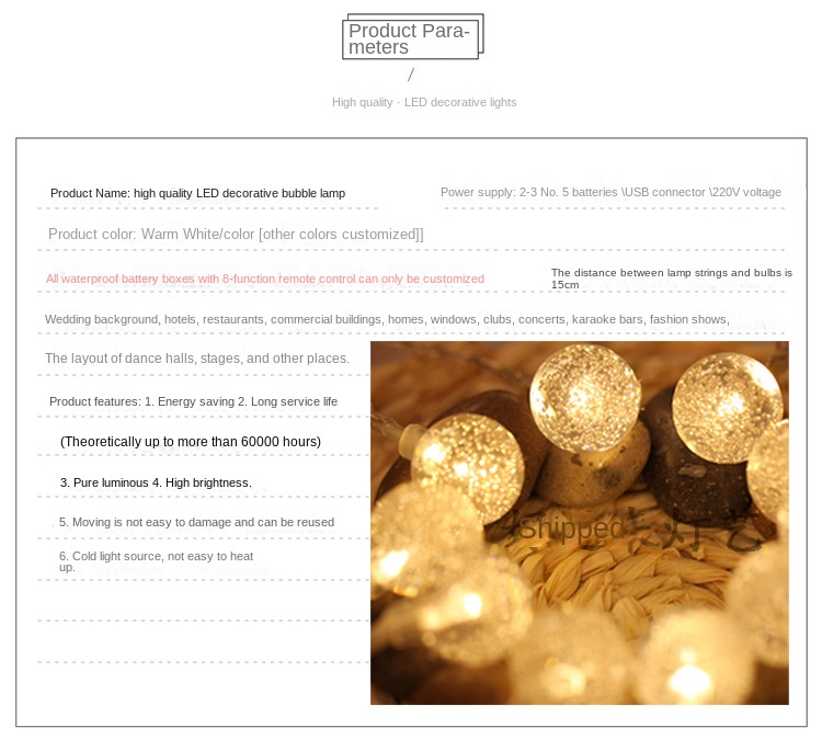 LED Waterproof String Lights for Decoration, 200 Lumens, 10 LED Bulbs, IP43 Protection Grade, 50000 Hours Lifespan