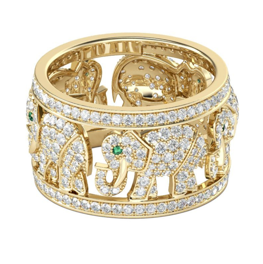 Gold Plated Elephant Ring with Full Diamonds, Creative and Fashionable Jewelry