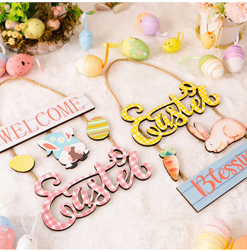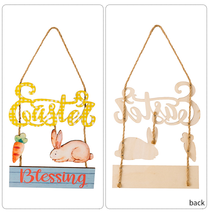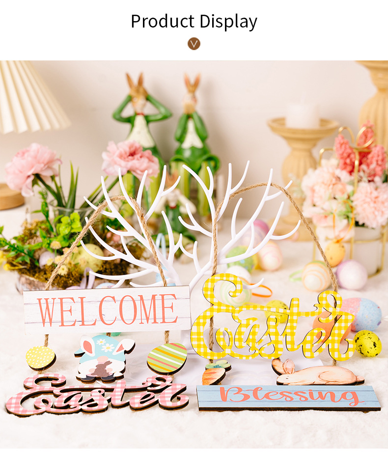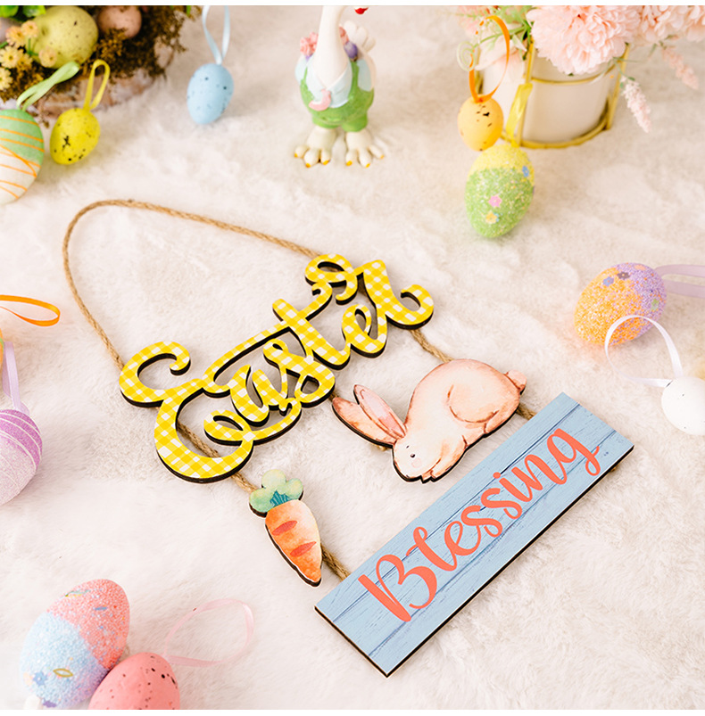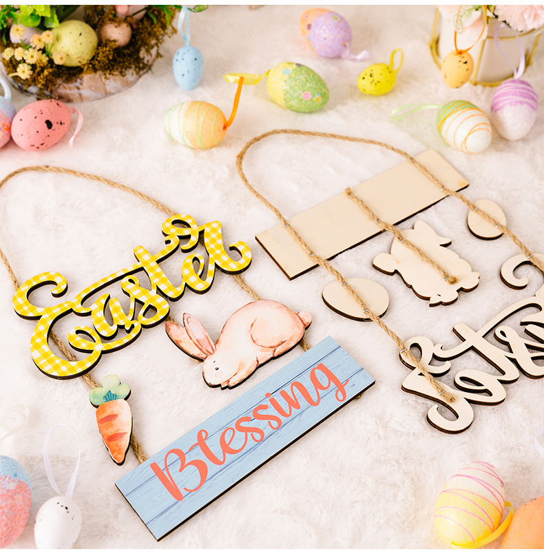 Hao Bei New Easter Decoration Easter Grid Letter Wooden Hanging Pendant Cartoon Egg Bunny Pendant