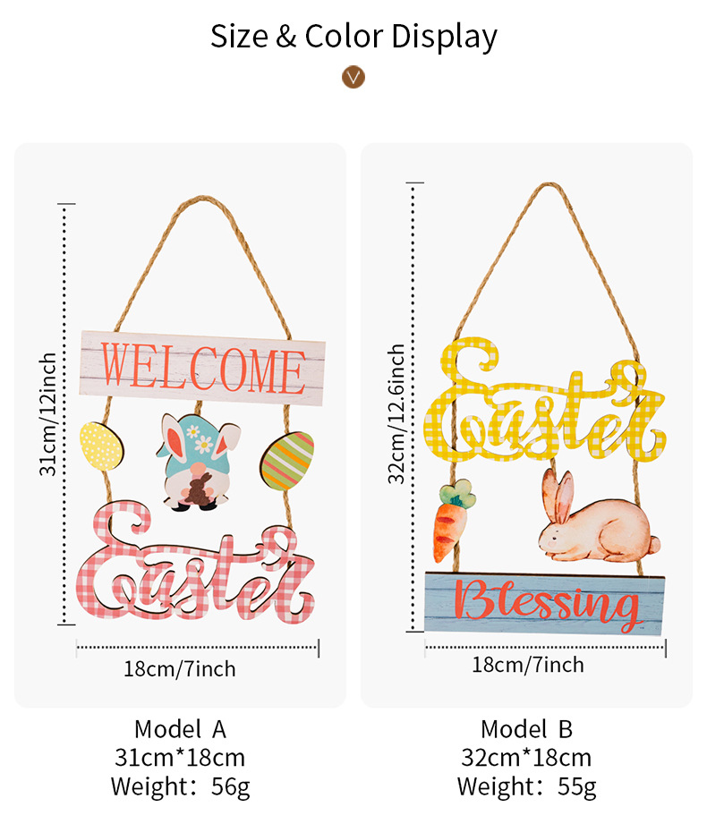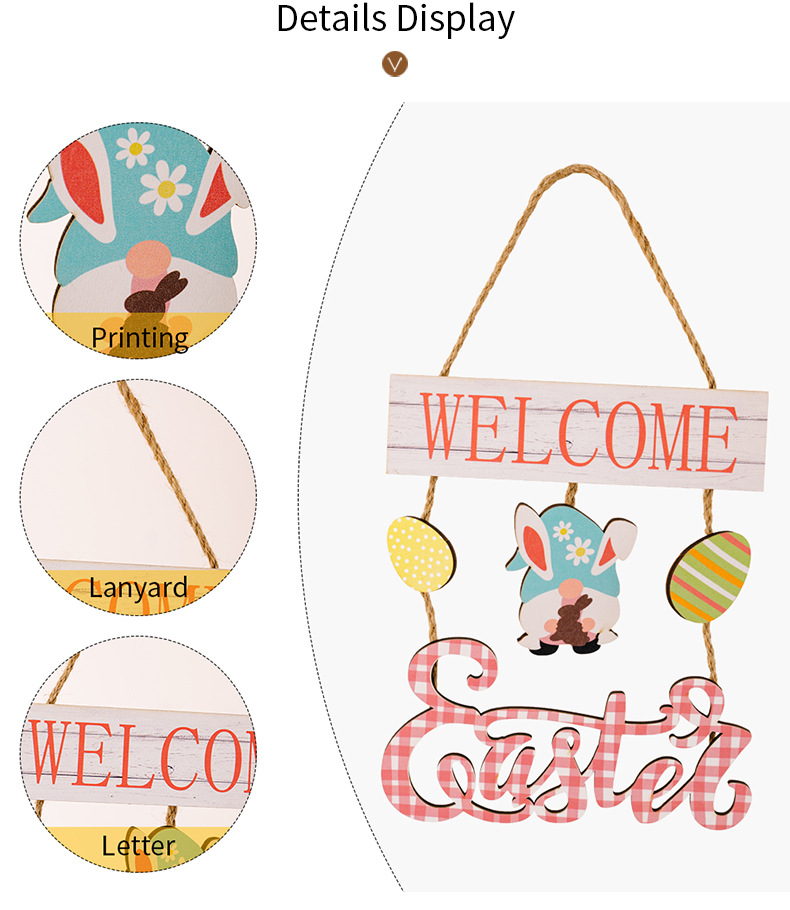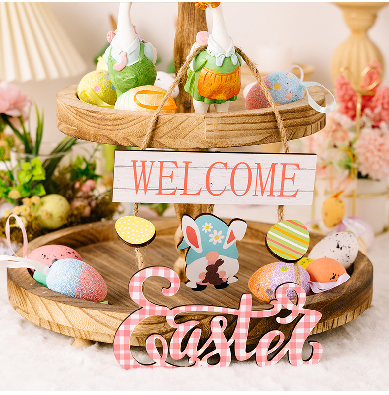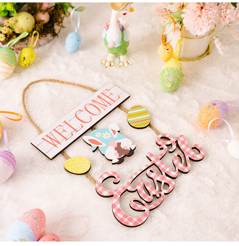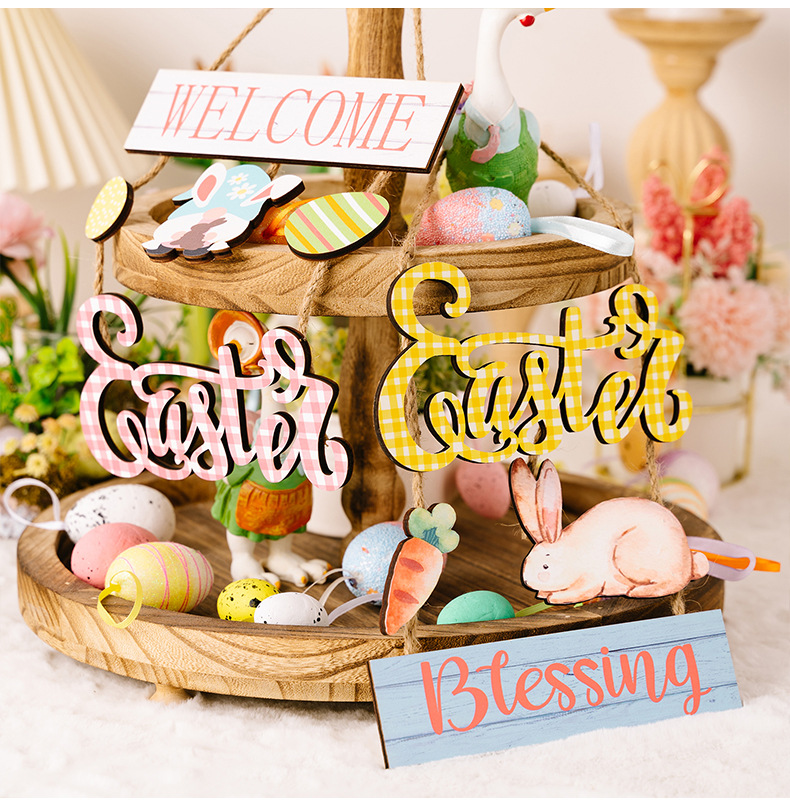 Hao Bei New Easter Decoration Easter Grid Letter Wooden Hanging Pendant Cartoon Egg Bunny Pendant