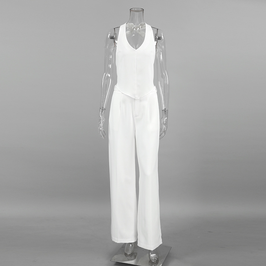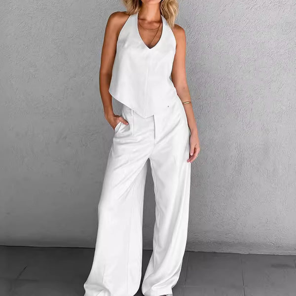 2024 New Women's Two-Piece Set with Neck-Hanging Backless Vest and Wide-Leg Pants
