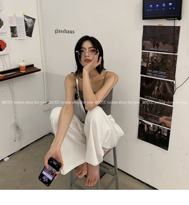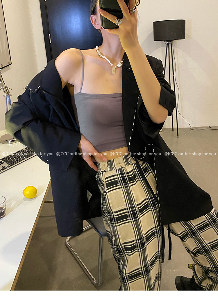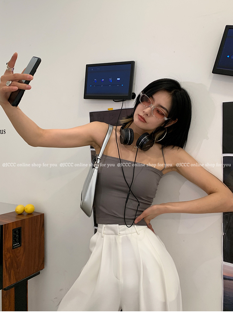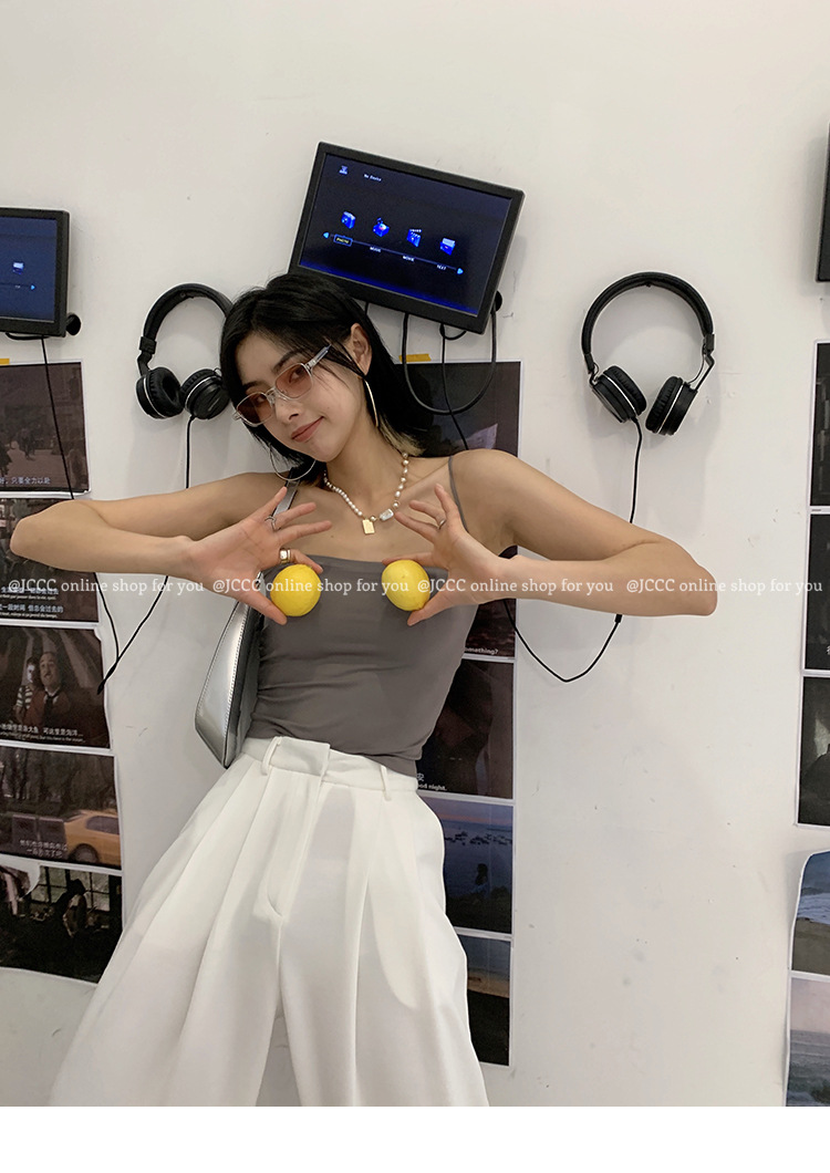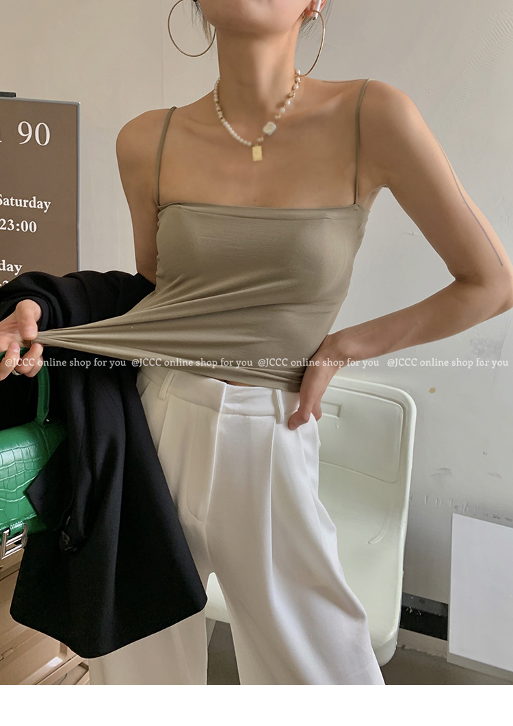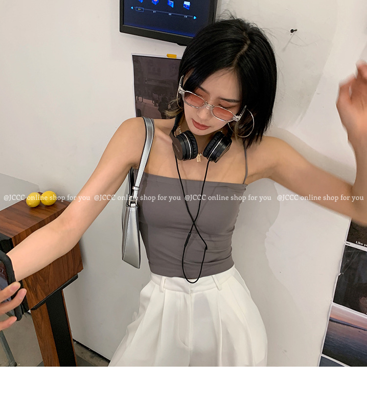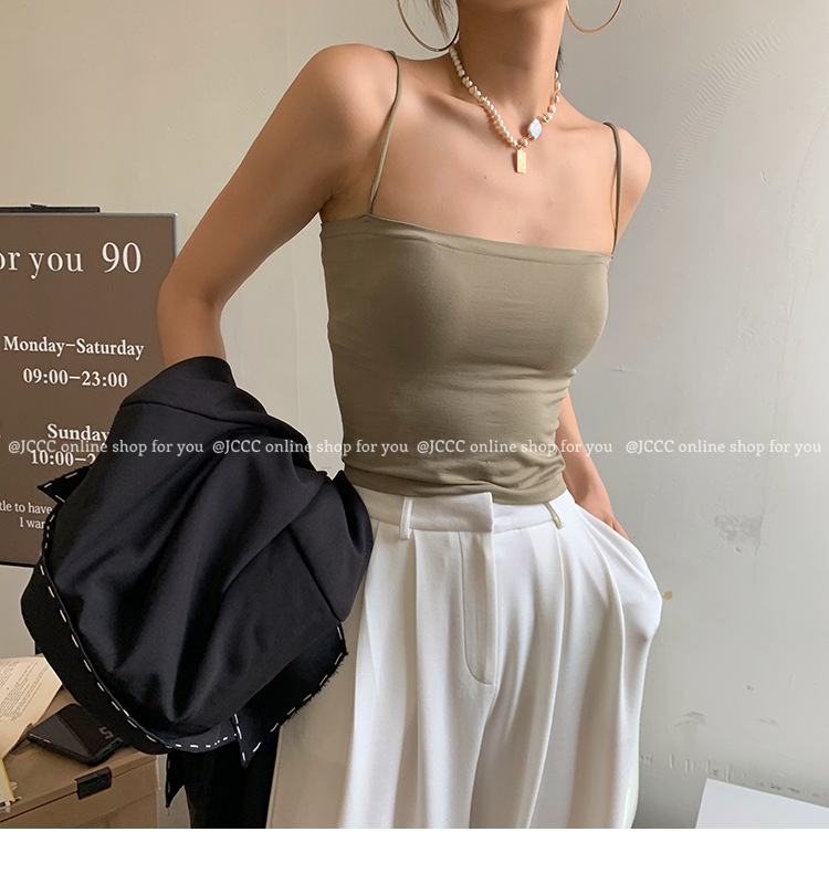 - ["Made of 90%-95% Polyester/Nylon Blend, soft and comfortable to wear","Sleeveless tank top with fixed cup design, perfect for summer wear","Casual style with medium elasticity, suitable for all occasions","Japanese and Korean fashion, make you look more fashionable","Available in multiple colors and sizes, perfect for all body shapes"]