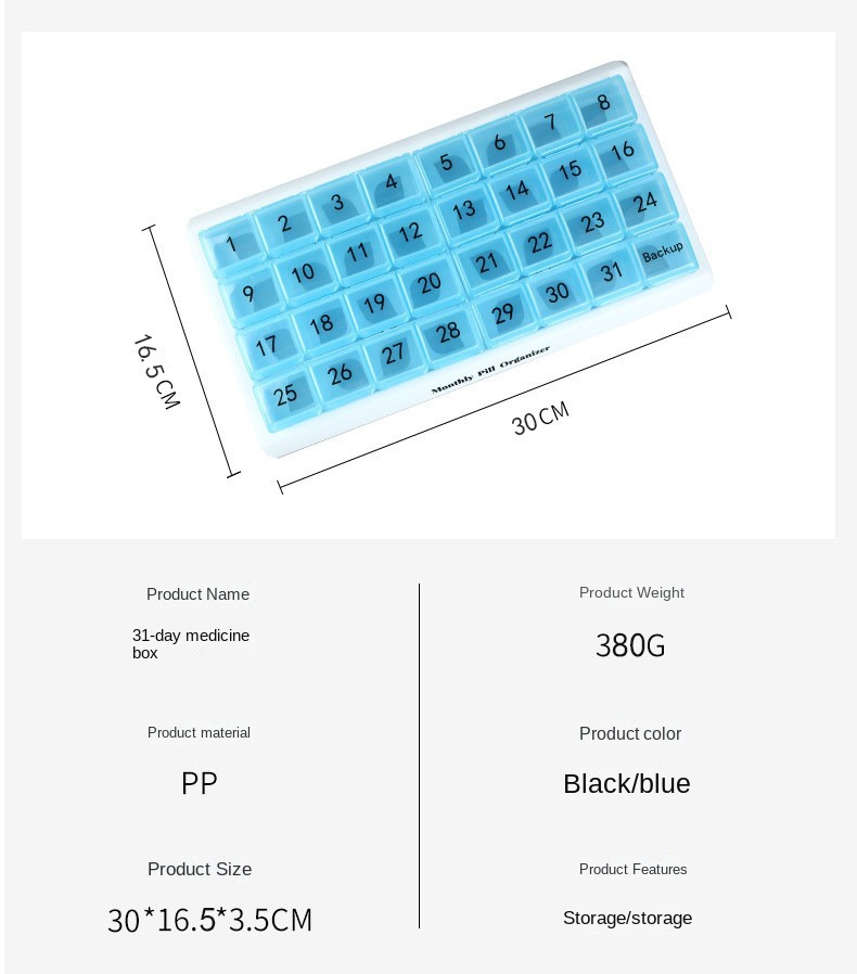 New Portable 31-Day Pill Box with Dust-Proof and Separated Pockets