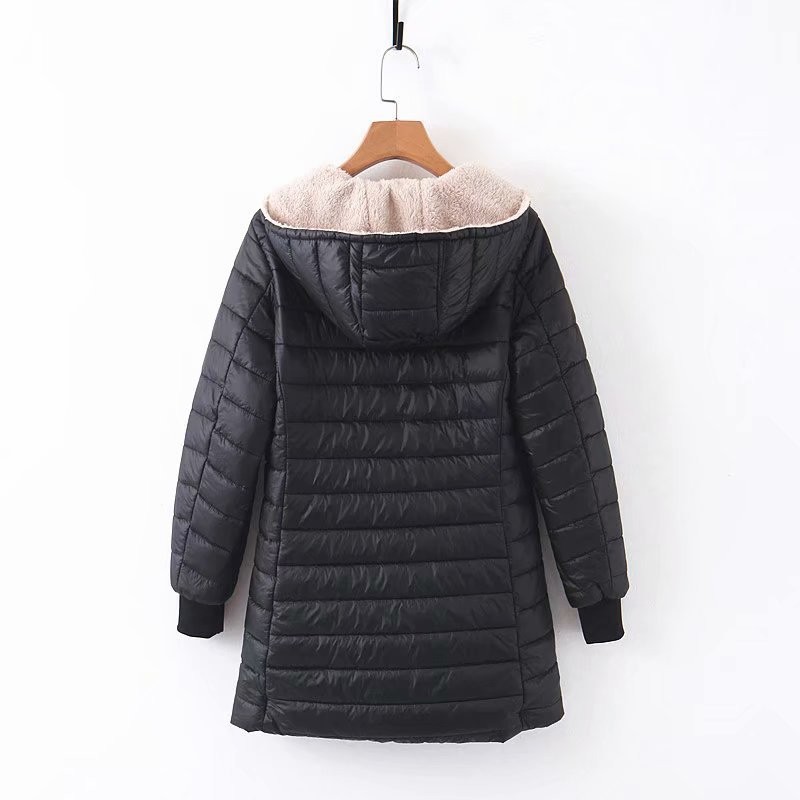 Women's Waterproof Hooded Down Jacket, 90%-95% Cotton Blend, Long Sleeve, Regular Fit, Japanese Casual Style