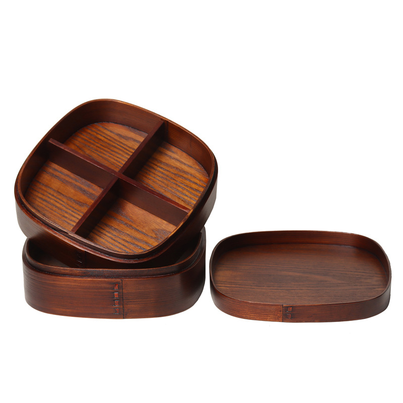 Wooden Bento Box for Kids - 501-800ML Single & Double Layer Lunch Box for Students & Office Workers