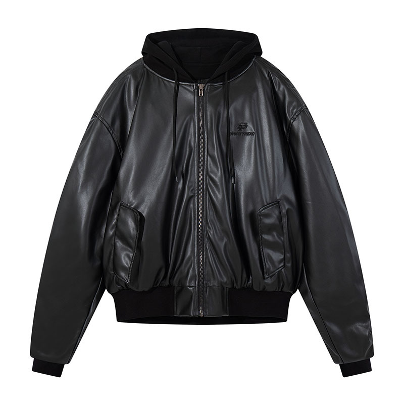 TKPA American Style Retro Heavyweight Jacket Faux Two-Piece Spliced Hooded Thickened PU Leather Cotton Coat Men's Cotton Clothes