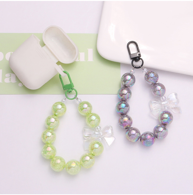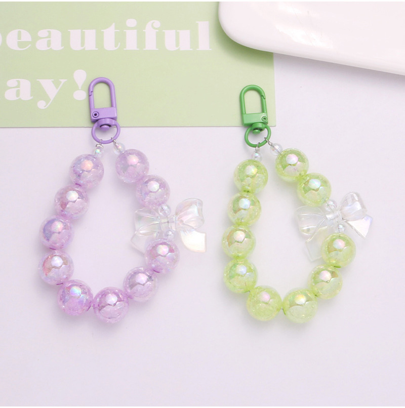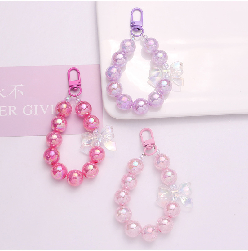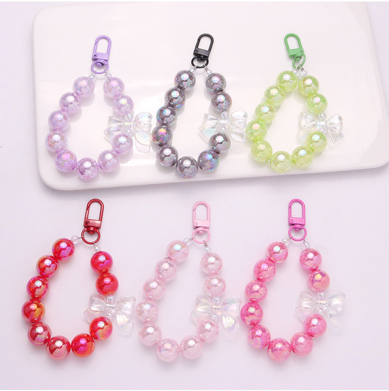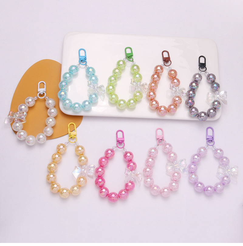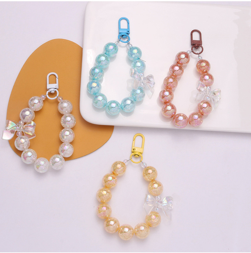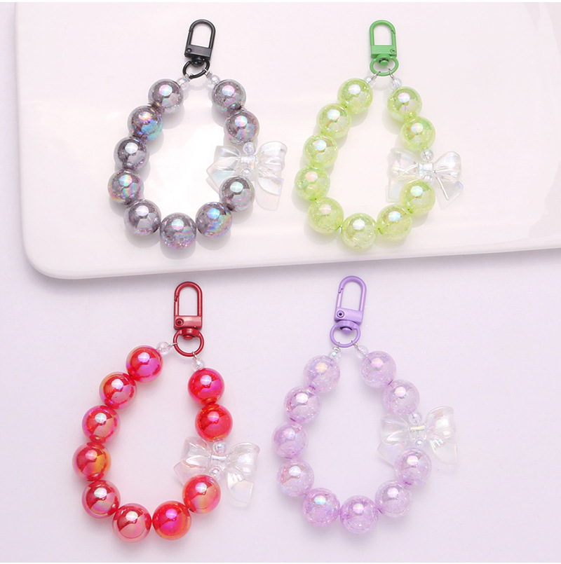 Modern Electroplated Acrylic Keychain with Colorful Beads Decoration for Car Key