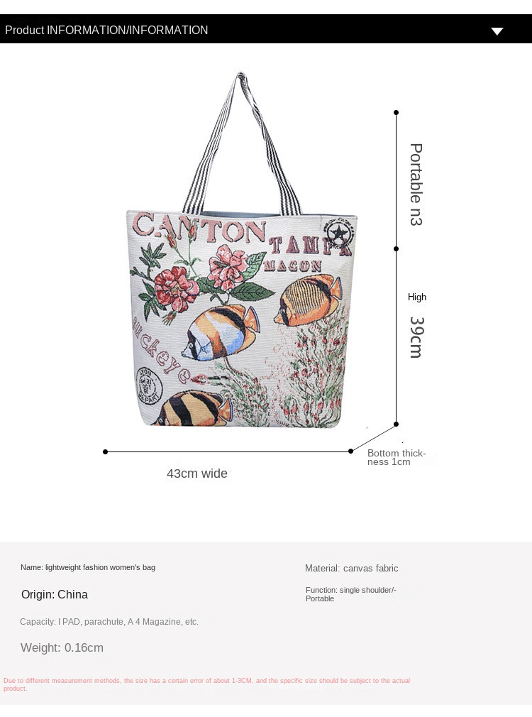 Fashion Canvas Shoulder Bag for Women, Large Capacity Shopping Bag, Korean Style Simple Handbag
