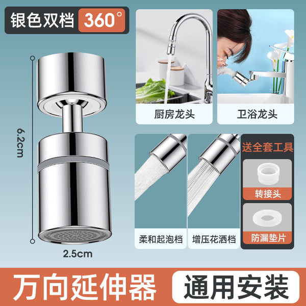 Universal Rotatable Faucet Extender - Waterproof Splash Guard - 8514 Model - Gold Alloy - Single/Double Control - Easy Installation