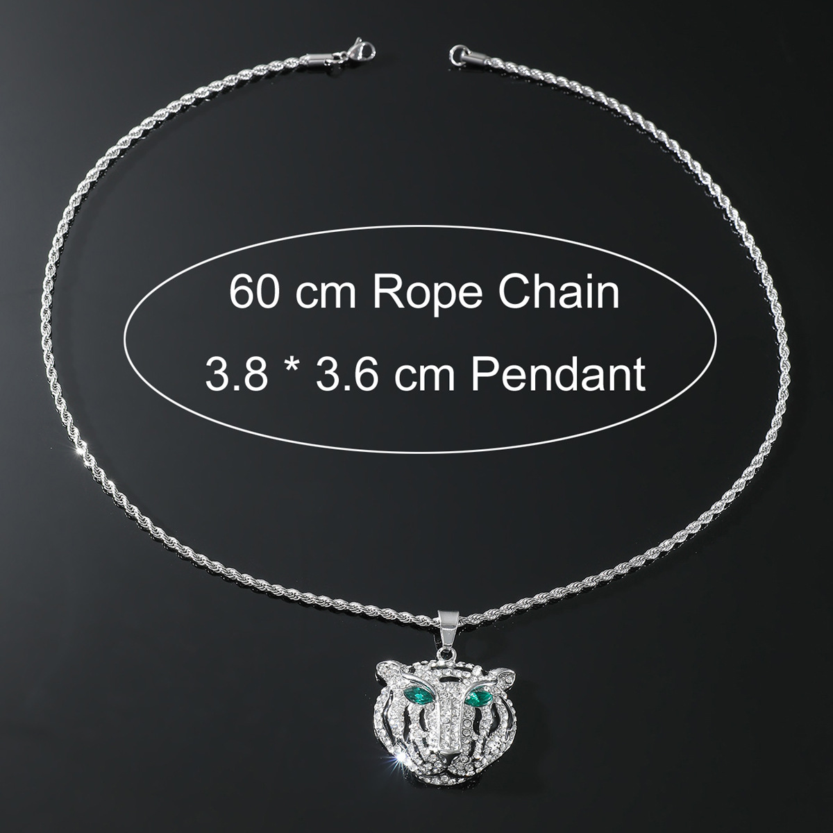 Hip Hop Alloy Lion Head Pendant Necklace with Rhinestones and Green Eyes for Personalized Style