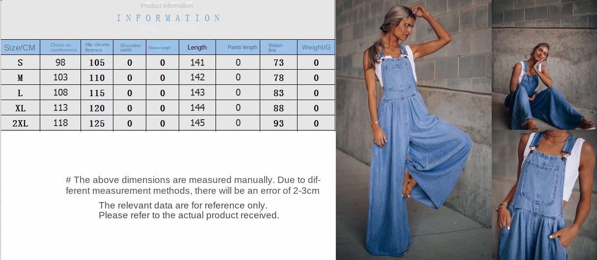 Loose Side Pocket Sleeveless Denim Jumpsuits, Casual Adjustable Shoulder Strap Denim Suspenders Trousers, Women's Denim Jeans & Clothing