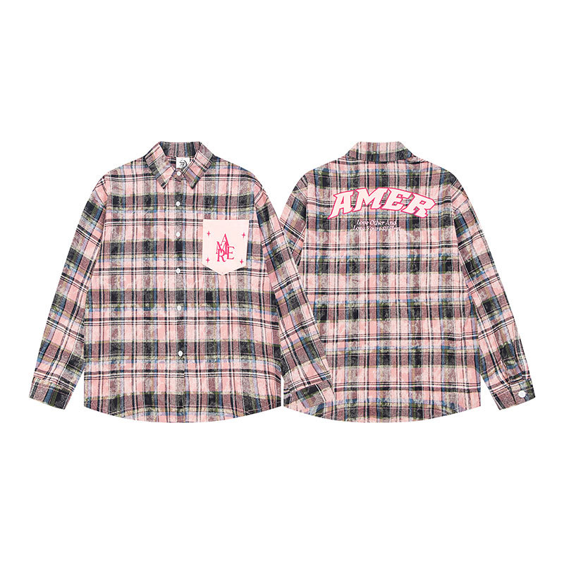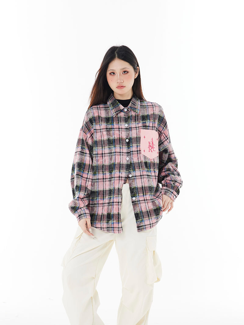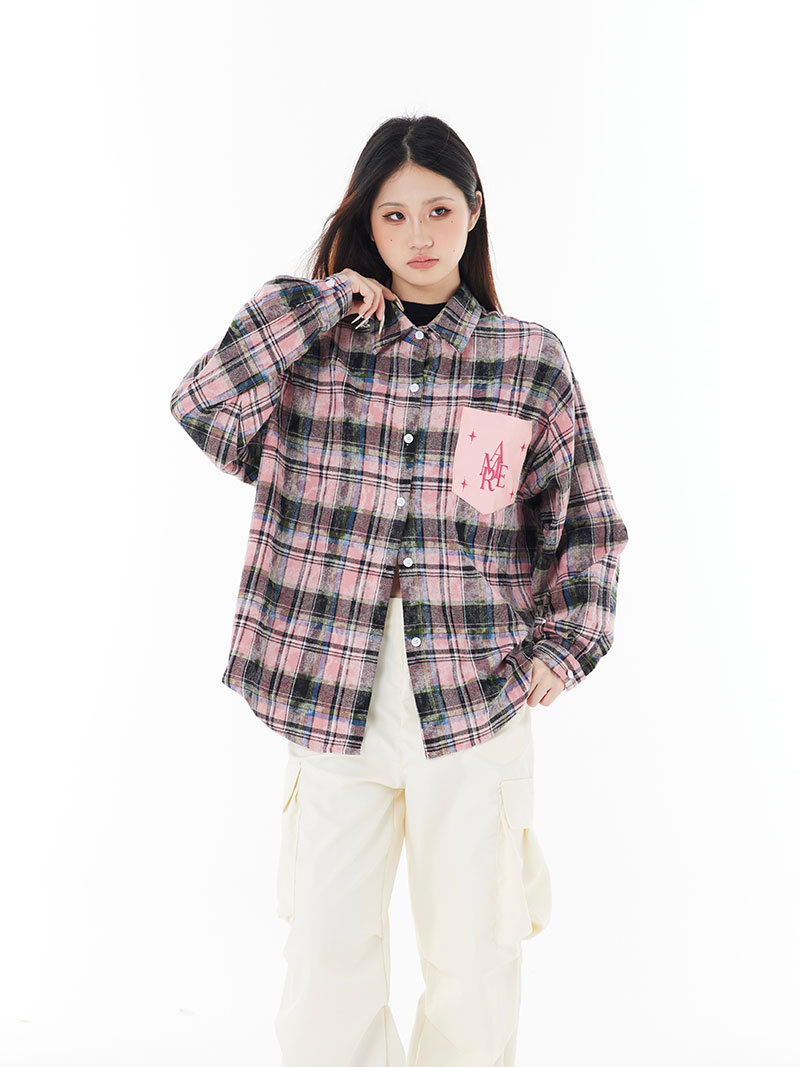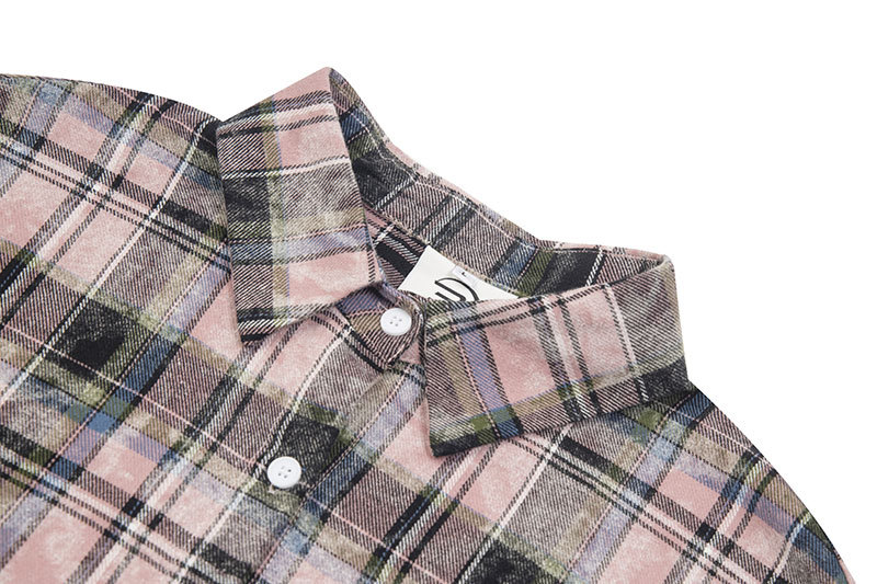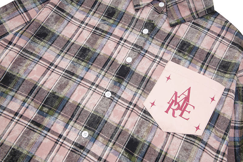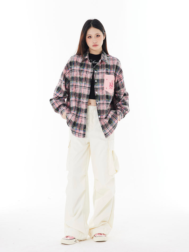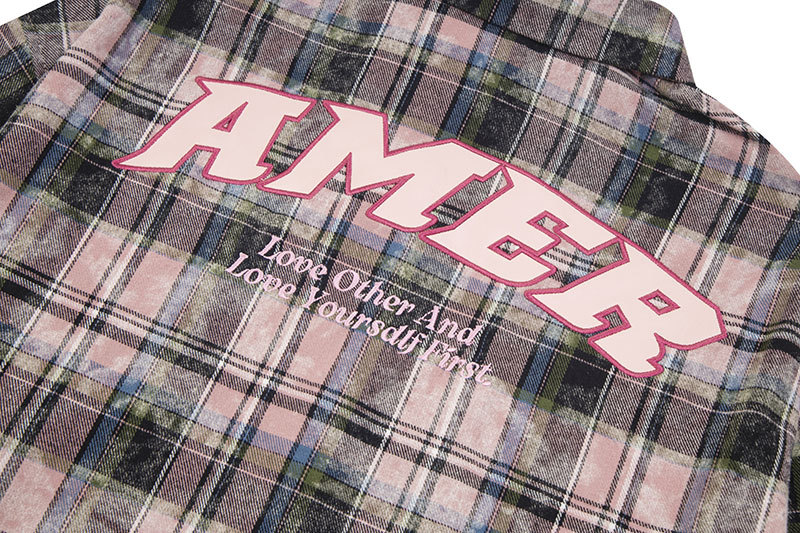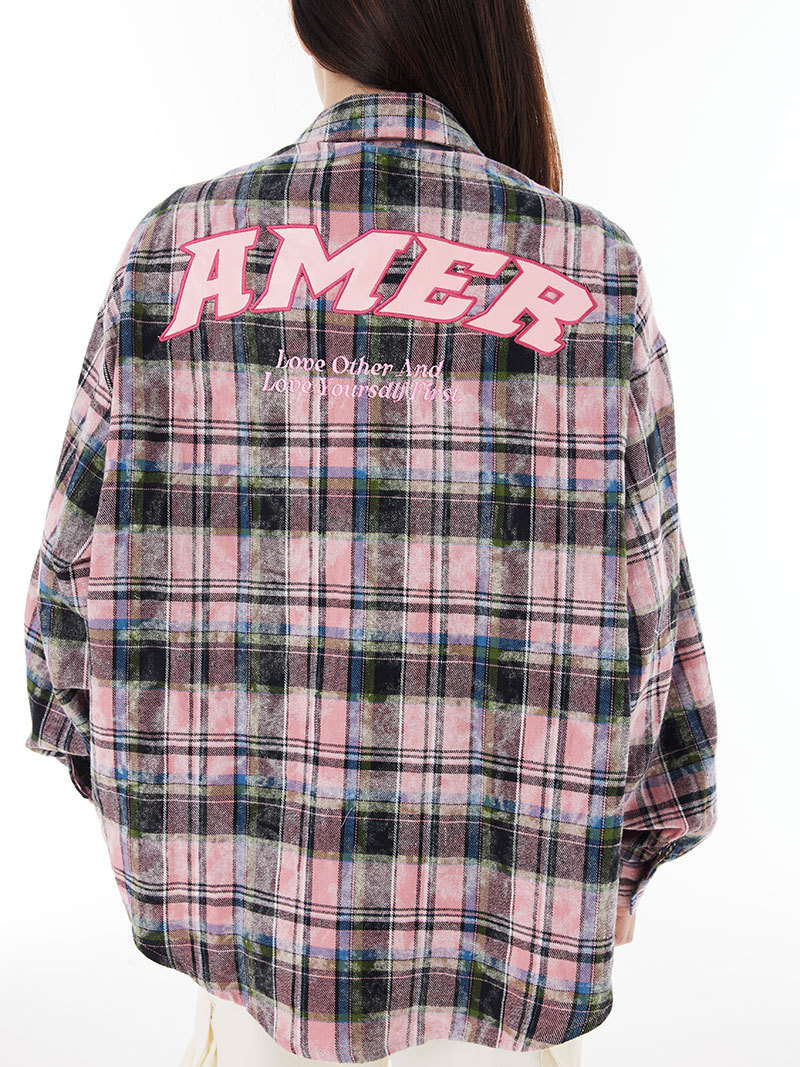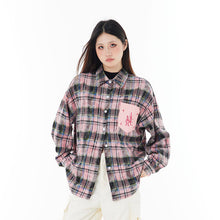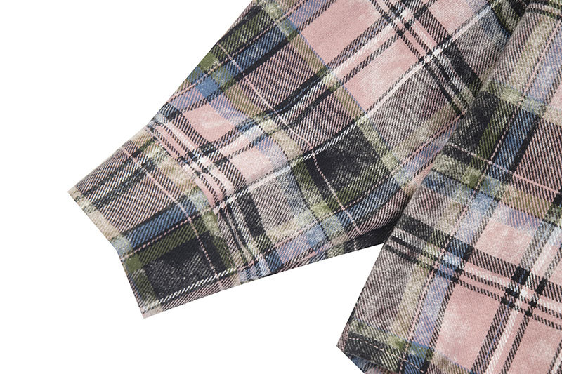 Spring/Autumn Retro Vintage Washed Embroidered Grid Shirt Jacket