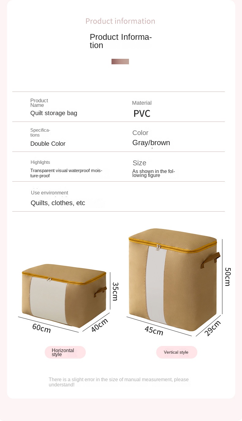 Large Capacity PVC Storage Bag, Multi-Purpose, Modern and Simple Style, Dustproof and Moistureproof, Suitable for Home and Travel Use