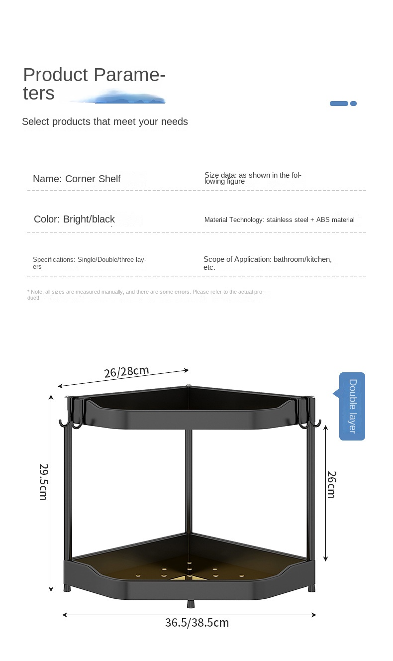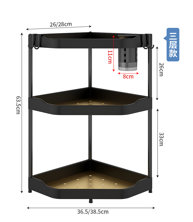 26 Sizes Triangle Wall Shelf, No Drilling, Stainless Steel+ABS Material, 30kg Capacity, 3-Layer, Creative Design