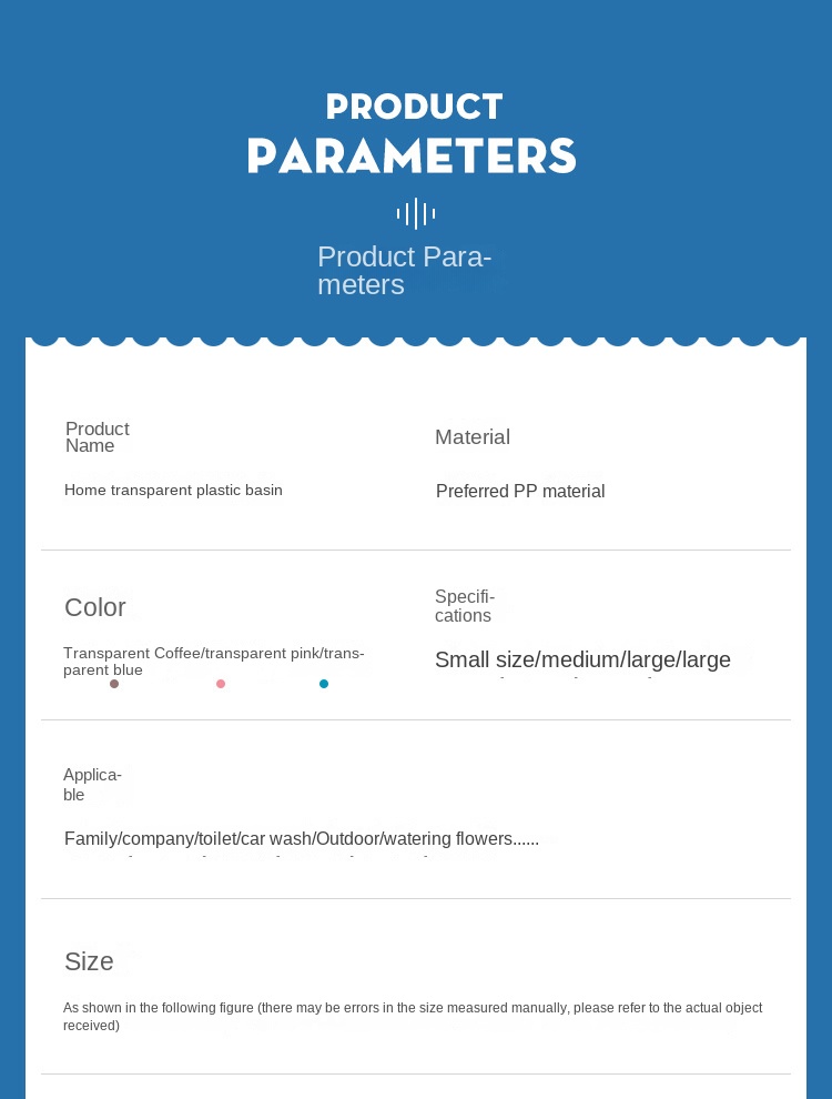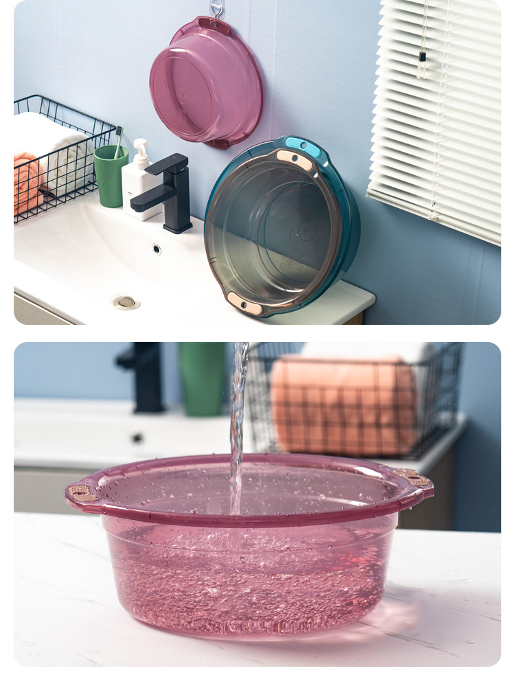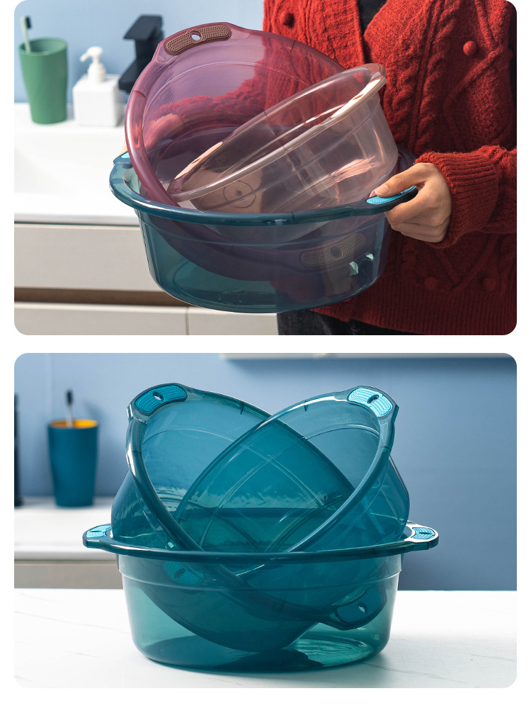 Transparent Plastic Double Ear Basin, 26cm/30cm/34cm/37cm, Modern Simple Style