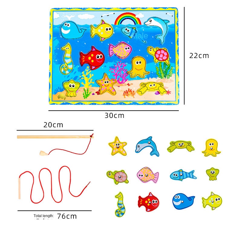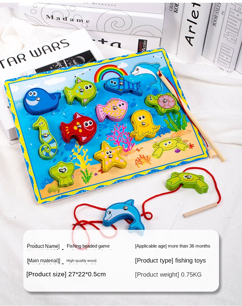 Wooden 3D Fishing Line Board for 1-3-year-old Toddlers, Early Education Magnetic Fishing