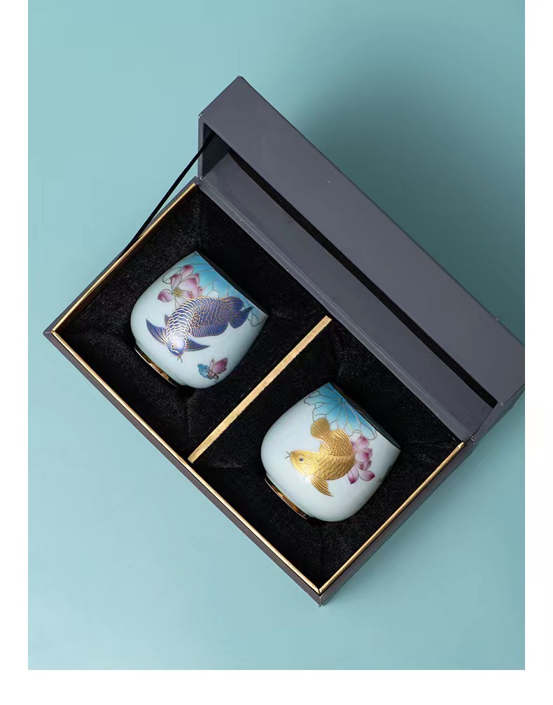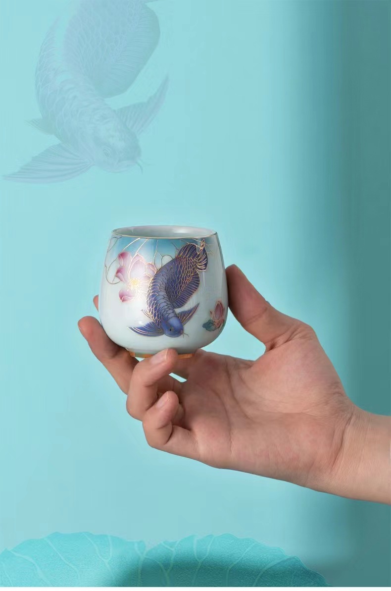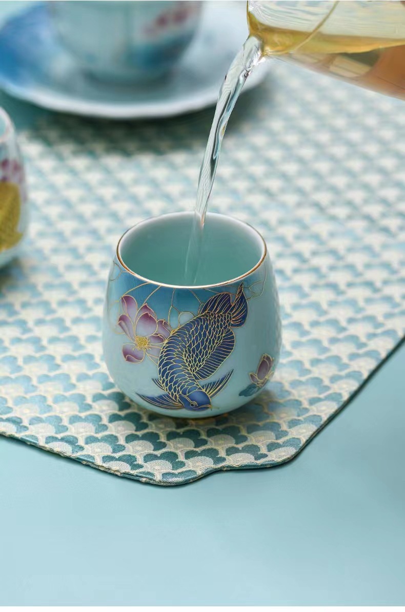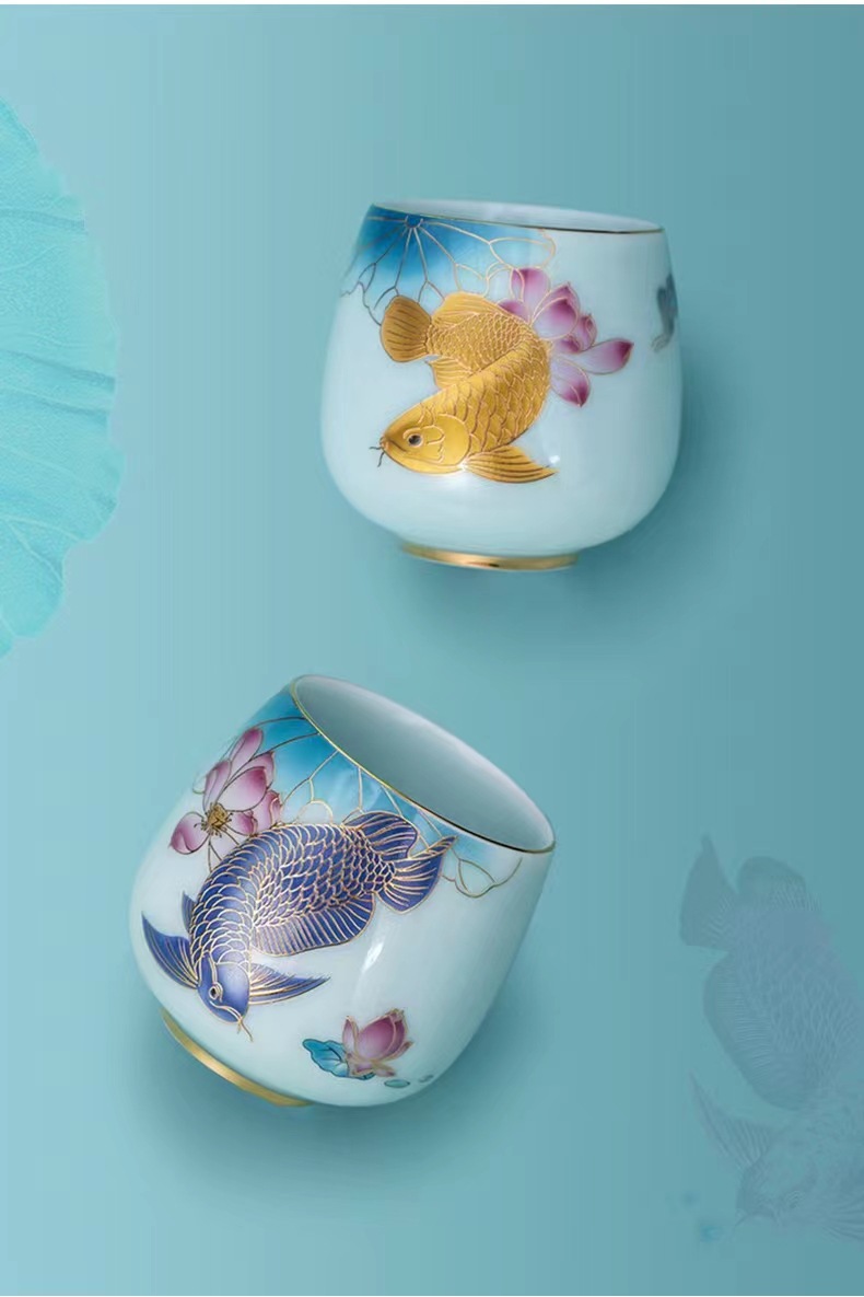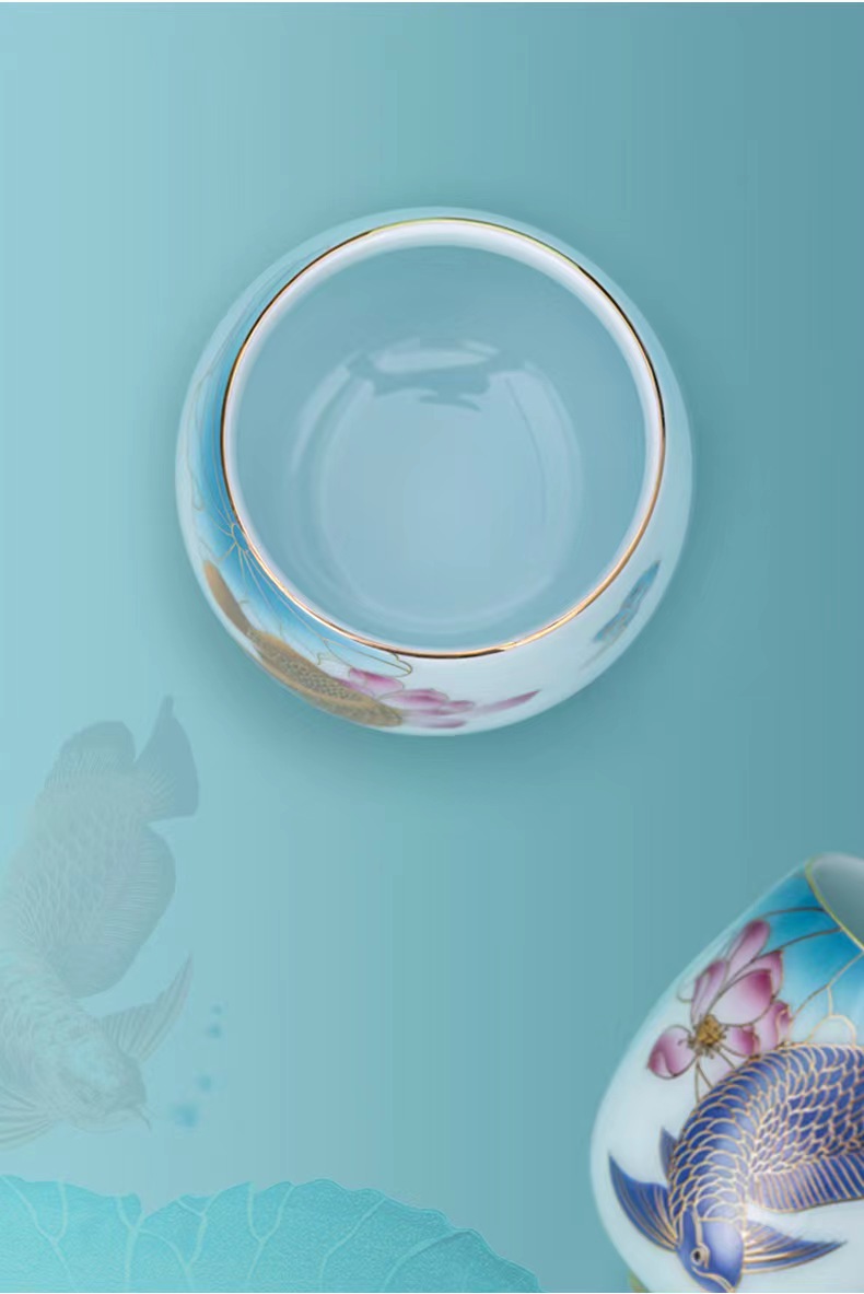 Chinese Style Teacup Set with 9 Pieces Porcelain Goldfish Teapot and Teacups