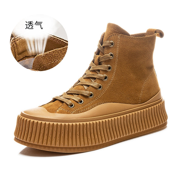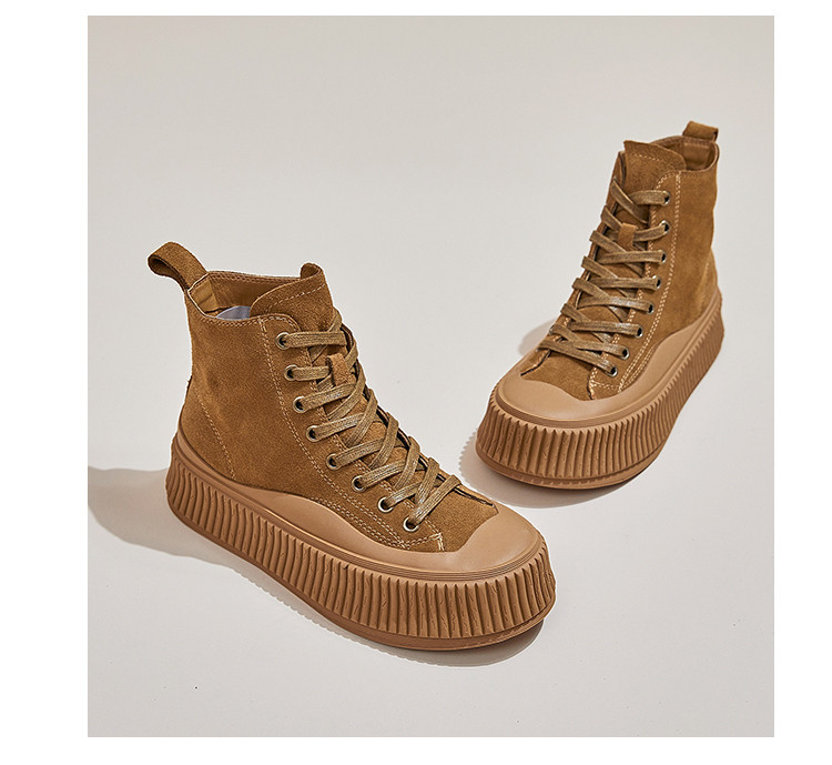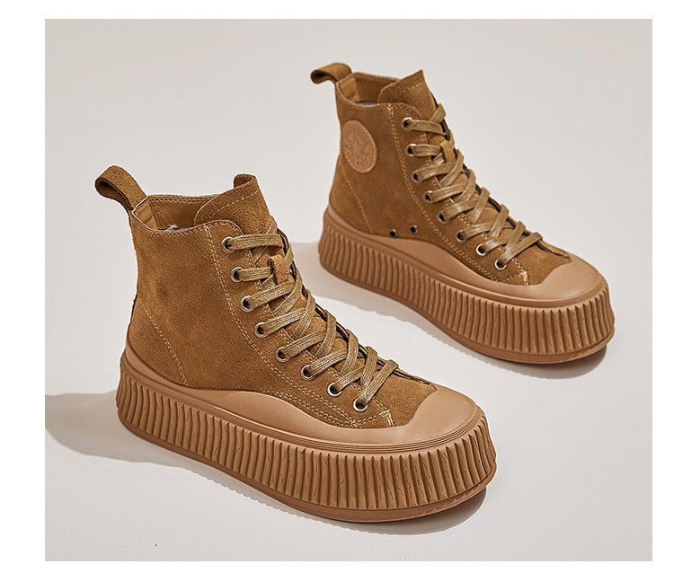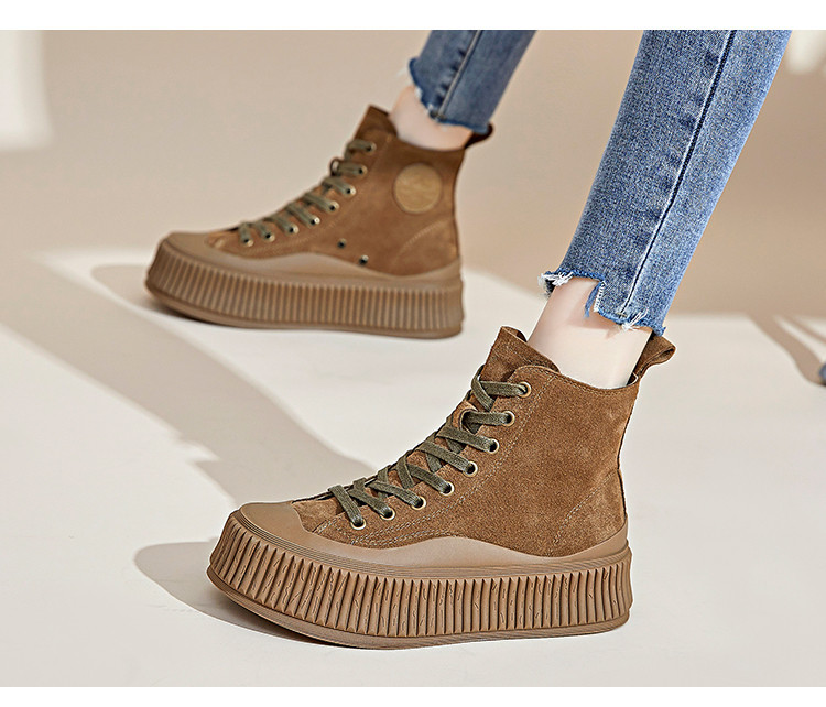 - ["Made of PU leather, durable and breathable","Thick-soled design, anti-skid and comfortable","Fashionable round toe and flat heel","Suitable for autumn and winter","Easy to wear with front lacing"]