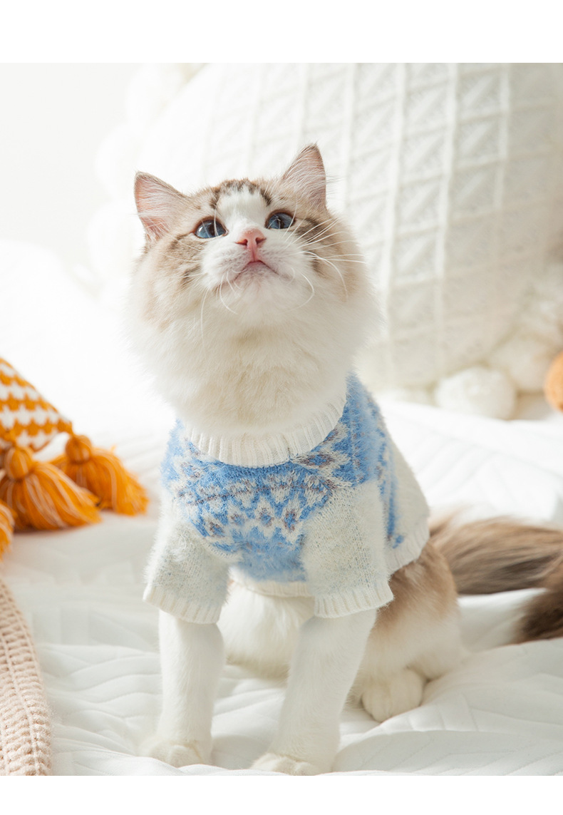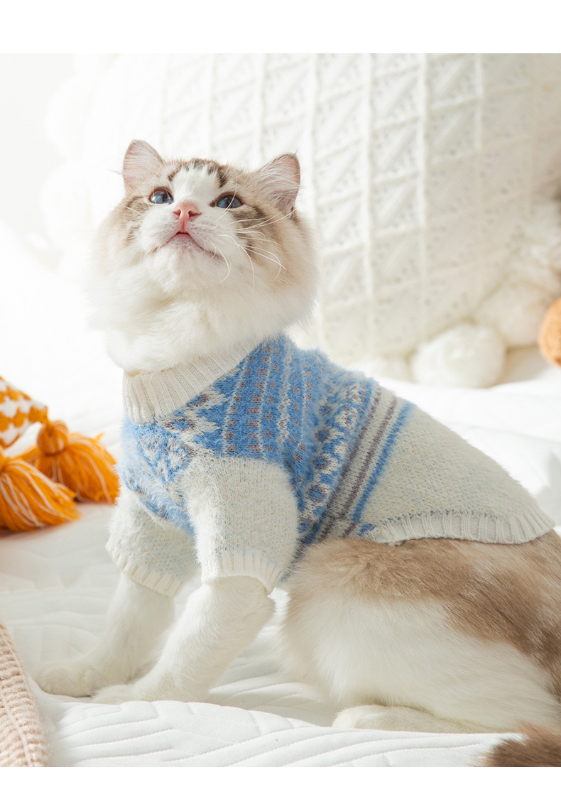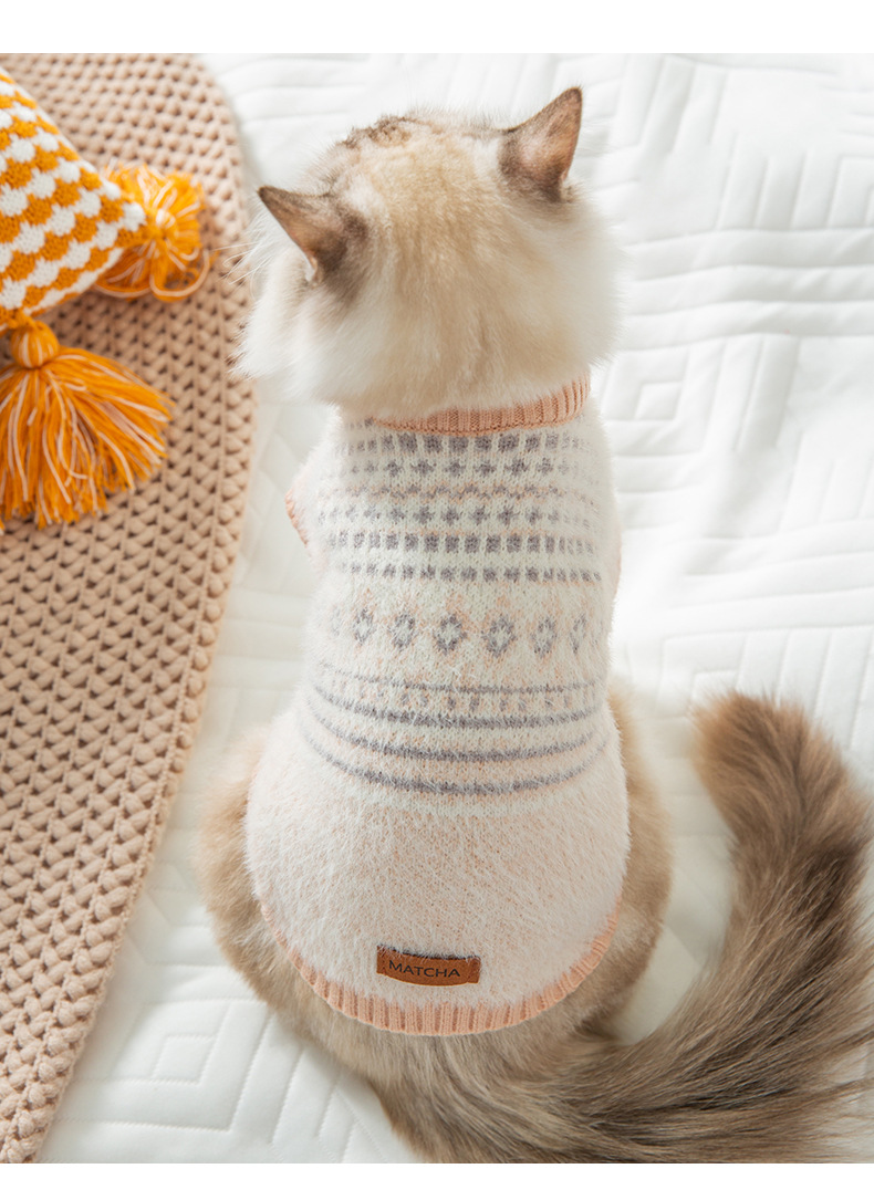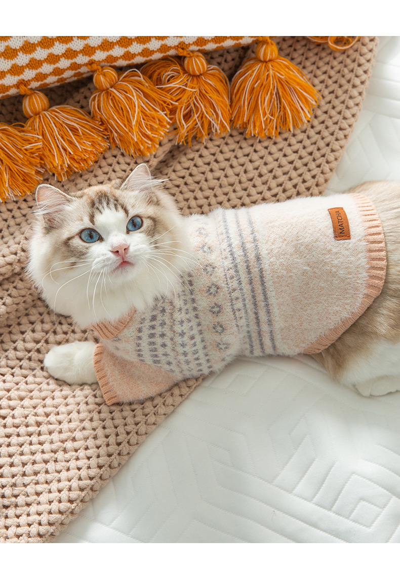 Warm Plaid Knit Sweater for Cats - Nordic Style Pet Clothes for Autumn and Winter