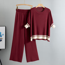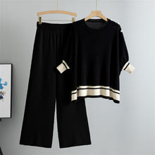 Women's Slim Knit Suit with Bat Sleeve Top and Wide Leg Pants