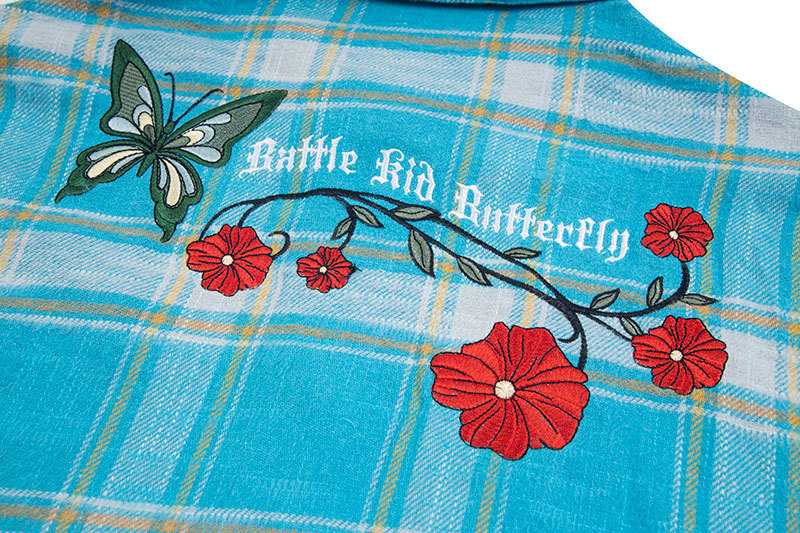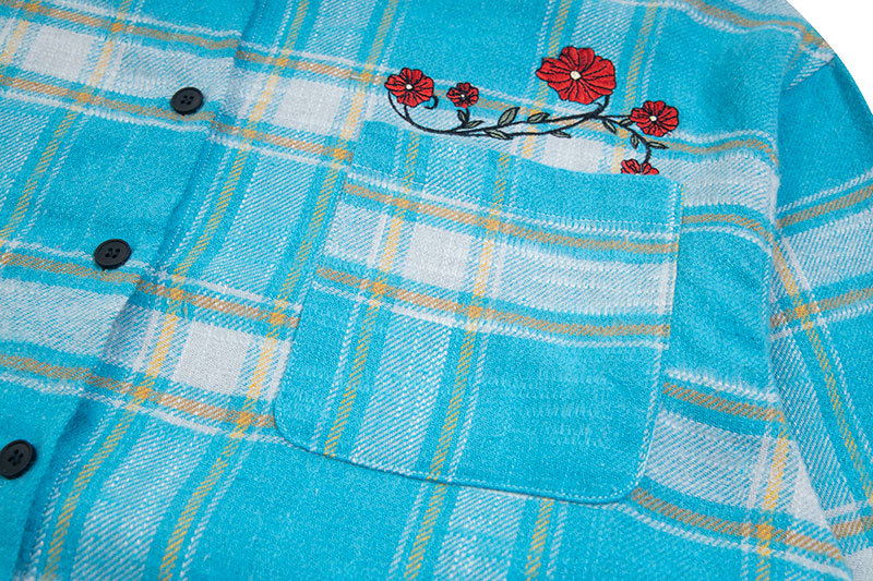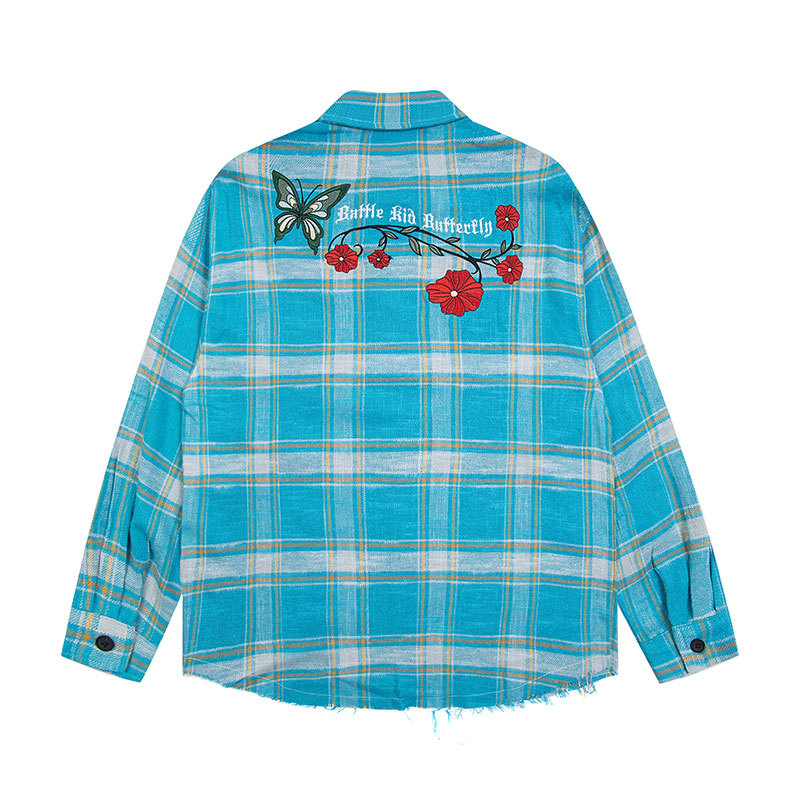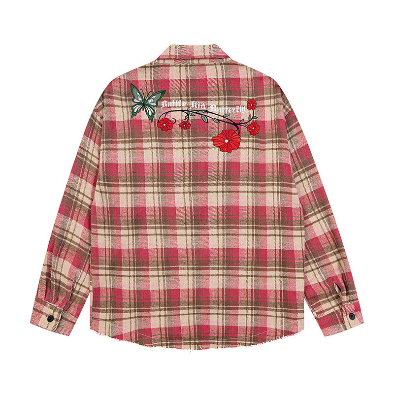 2024 American Vintage Hip-hop Embroidered Fringe Plaid Long Sleeve Clean Fit Shirt Women's Couple Matching Trend
