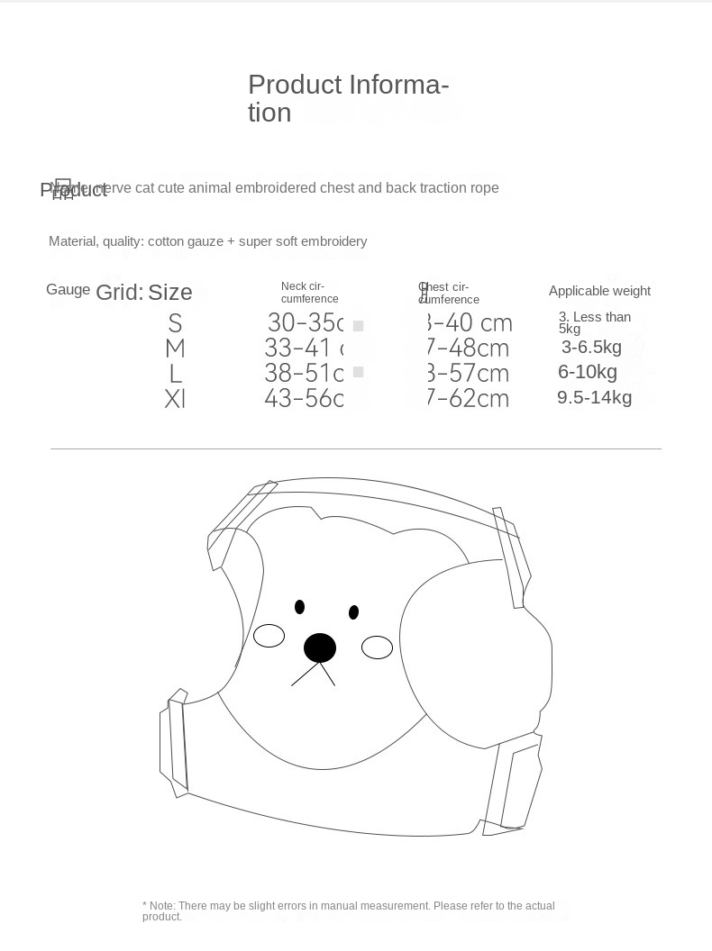 Anti-Escape Pet Harness Leash with Super Soft Card for Cats and Dogs
