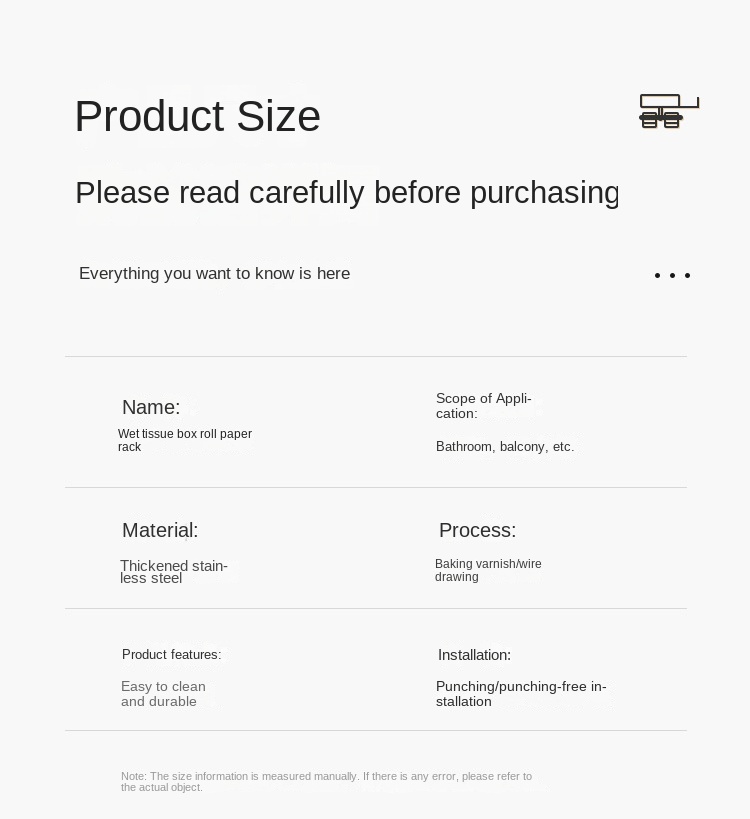 Modern Wall-Mounted Tissue Holder for Bathroom, No Drilling Required, Square/Rectangular Shape, Black Color, Stainless Steel Material