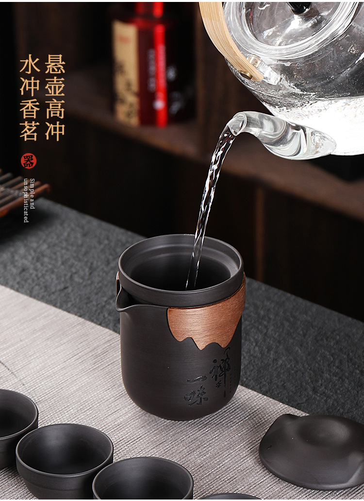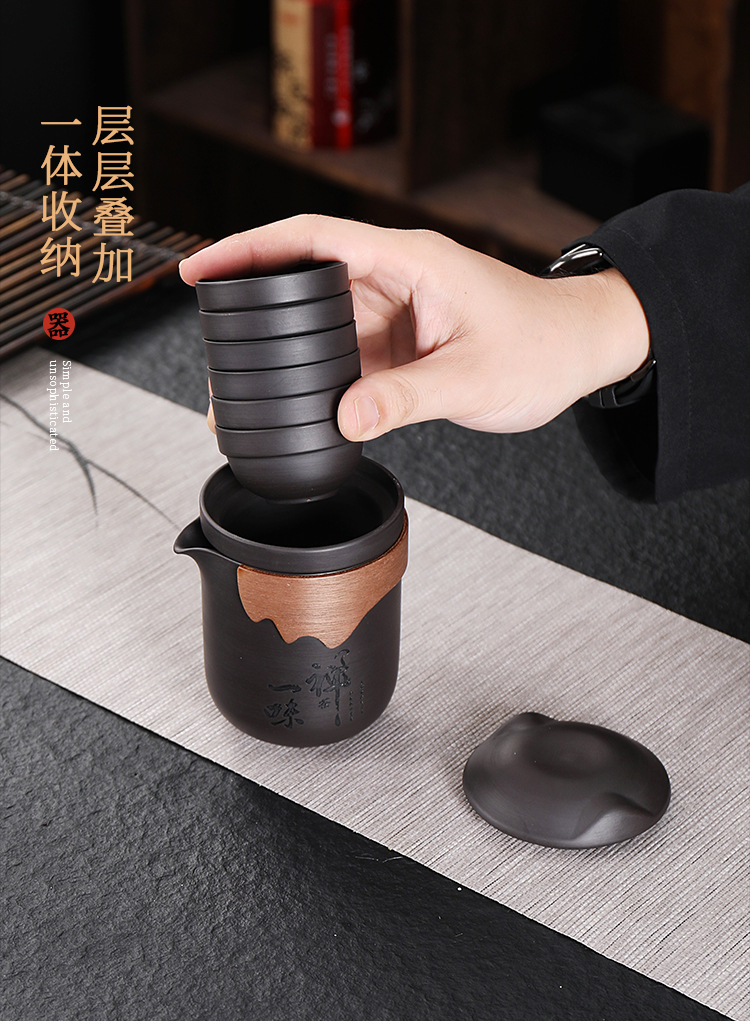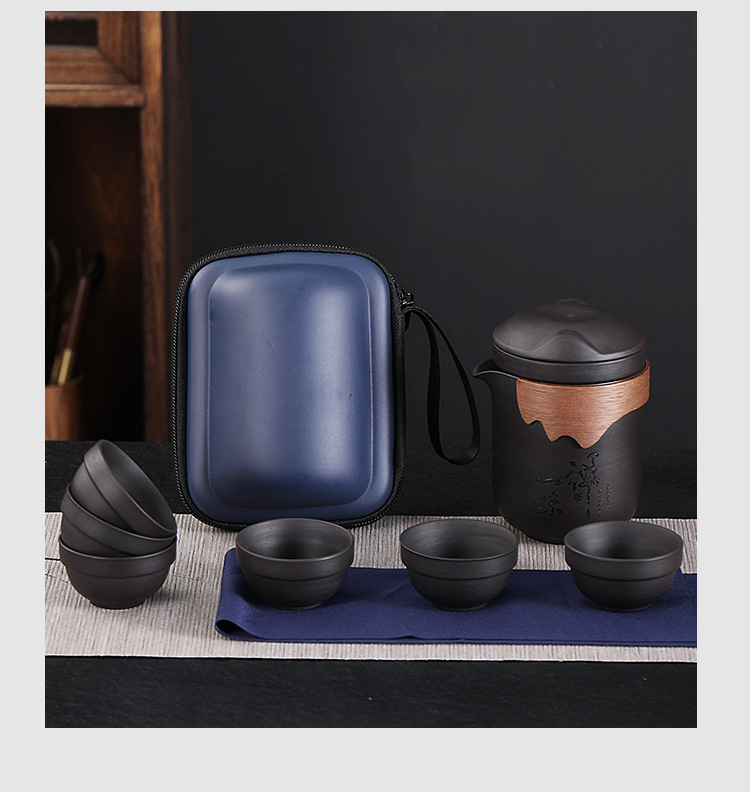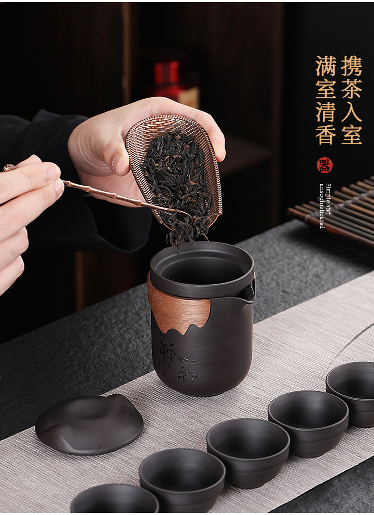 New Chinese Style Travel Teapot Set with 6 Cups and 1 Teapot for Outdoor Tea Brewing
