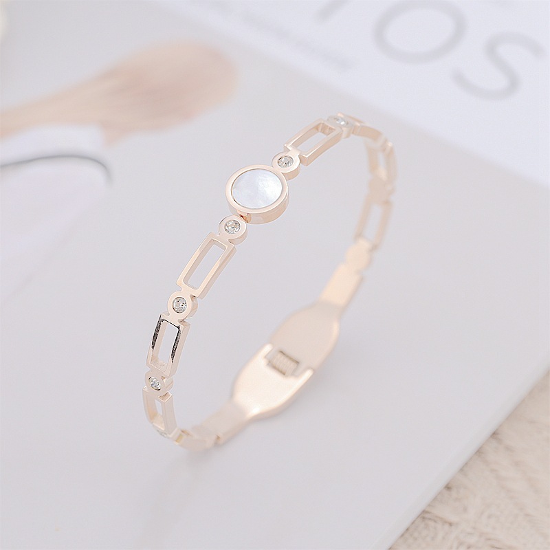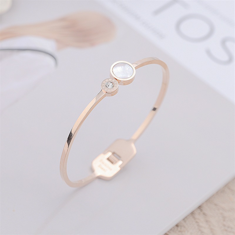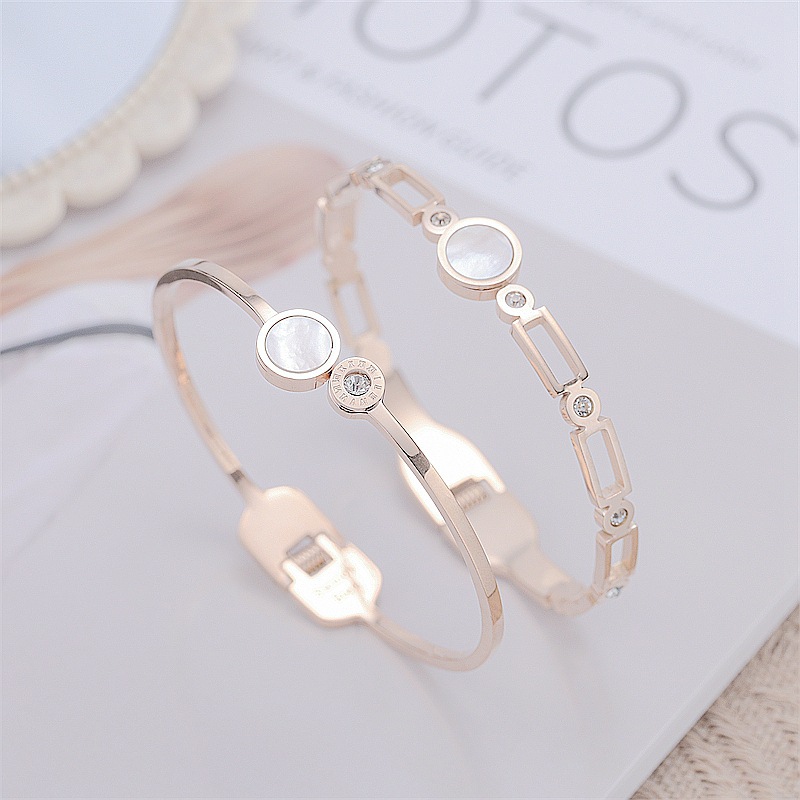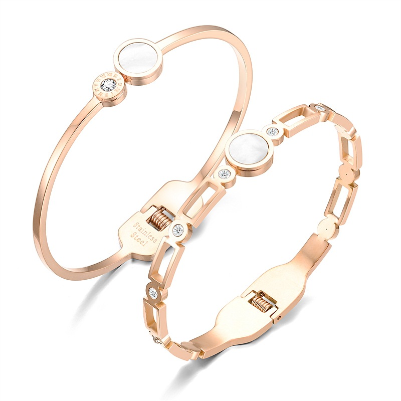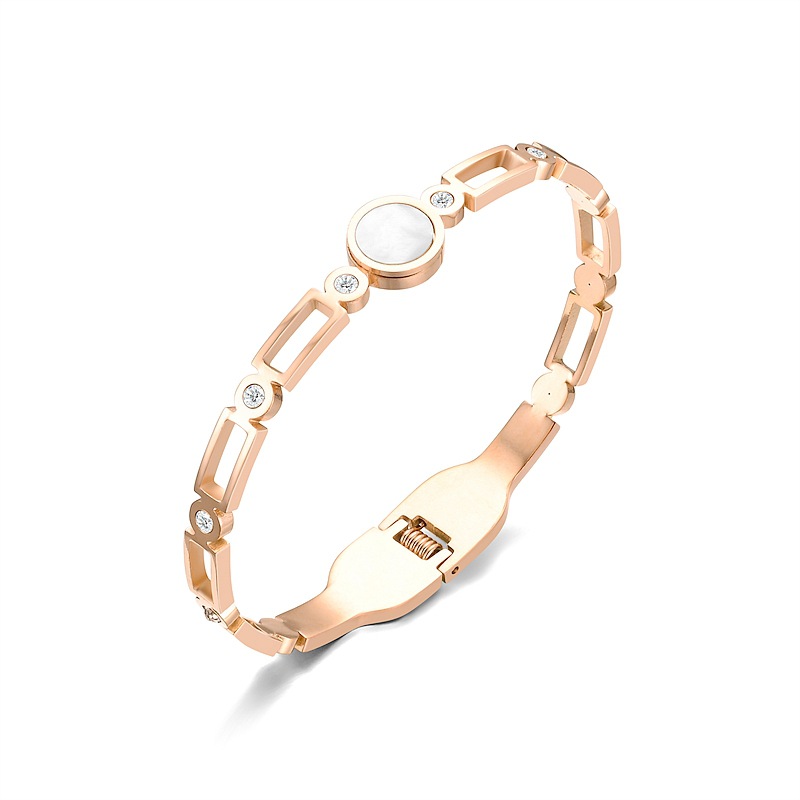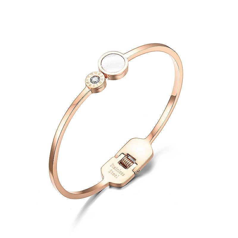 Trendy Titanium Steel Bracelet with Roman Numerals and Micro-inlaid Zircon Shell for Stylish People