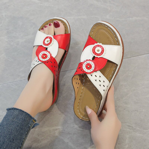 Retro Women Floral Slippers PU Upper Fish Mouth Shape Slip On Flat Shoes