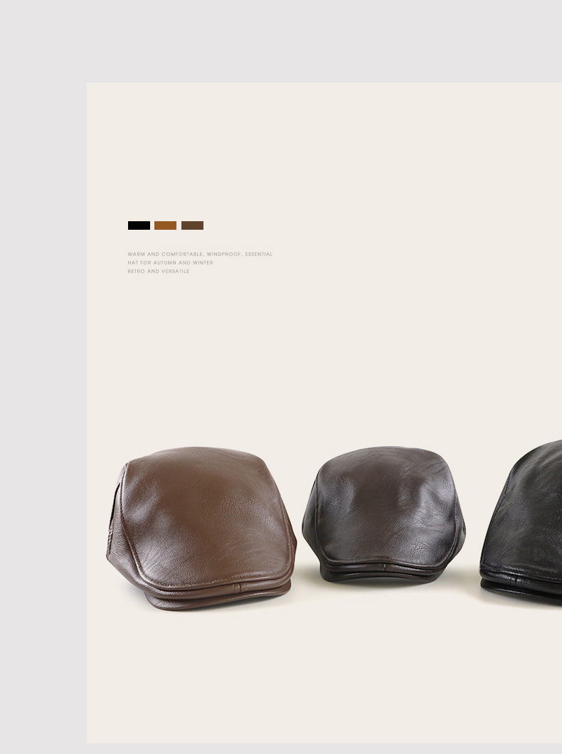 Pure Color Panel PU Leather Retro Duckbill Hat for Both Men and Women