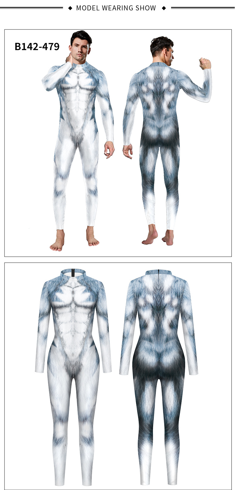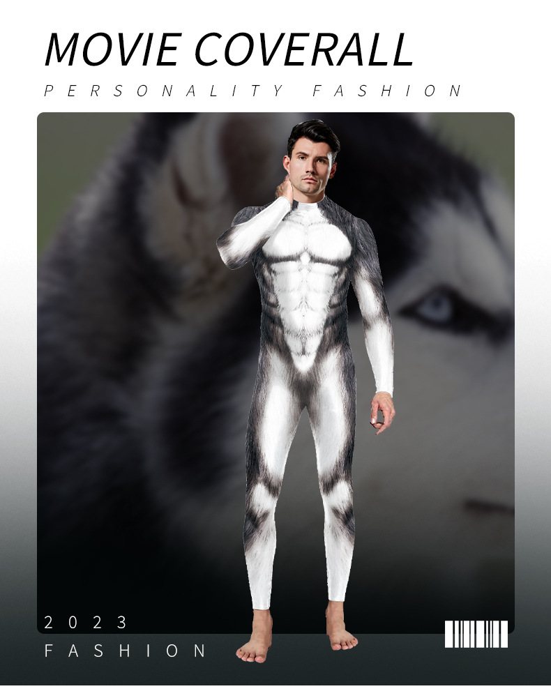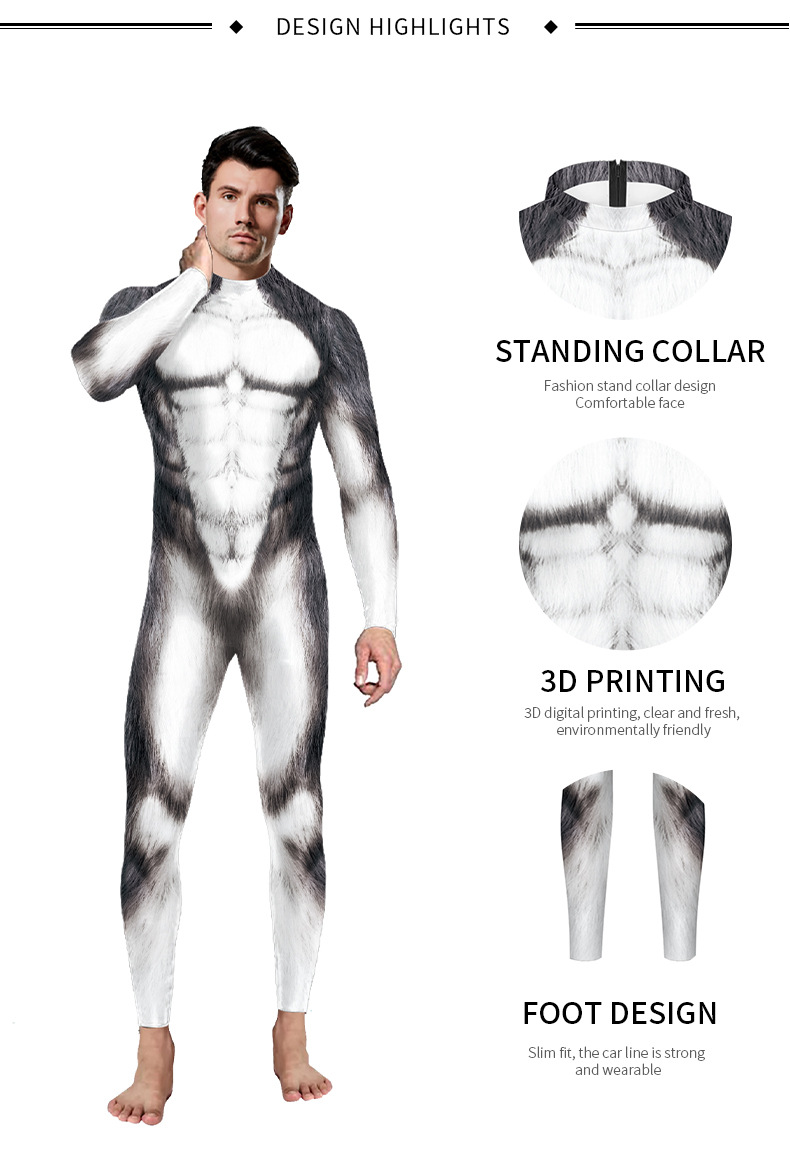 Men's Animal Cosplay Costume with Digital Print and Floral Embroidery