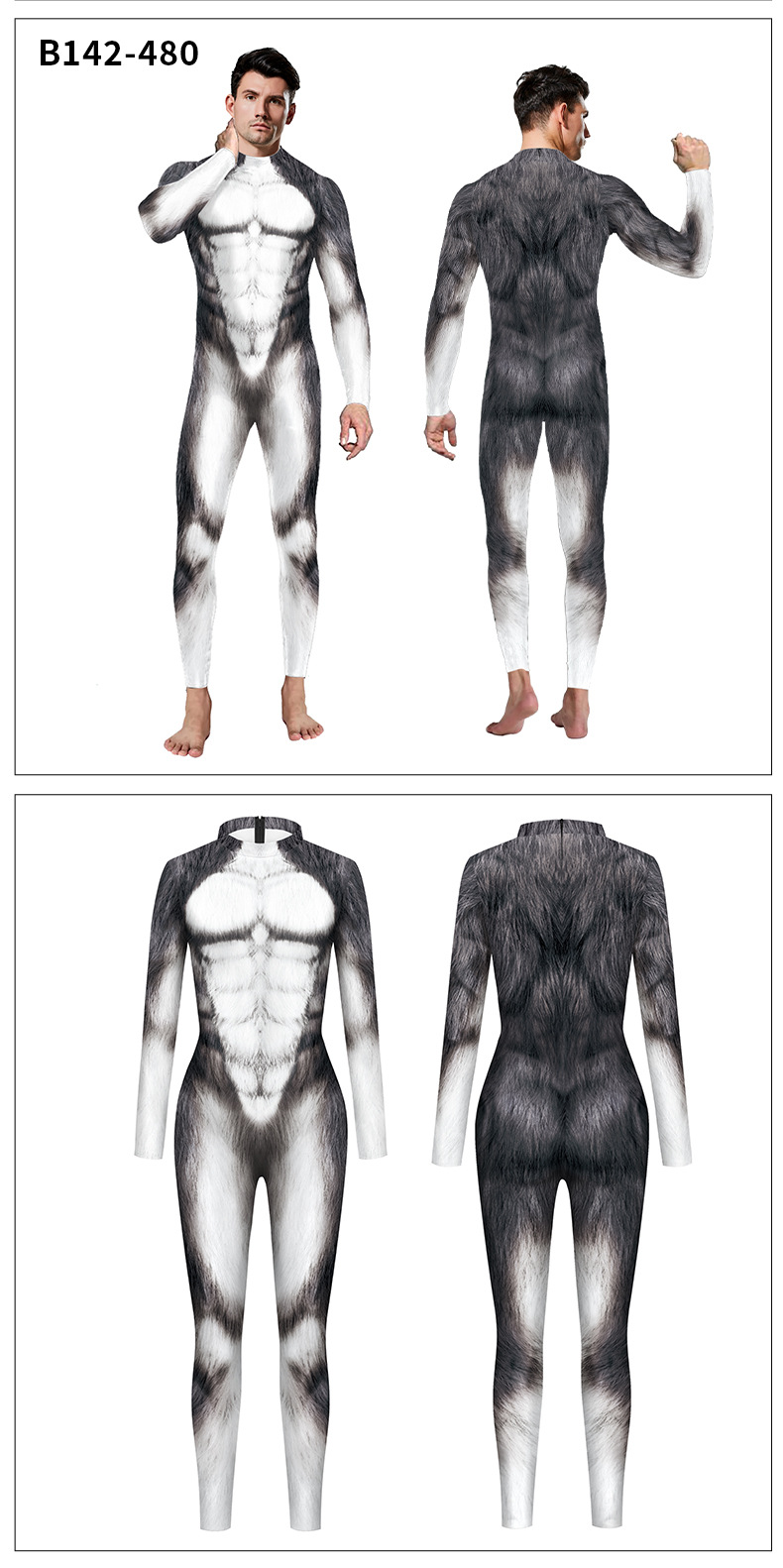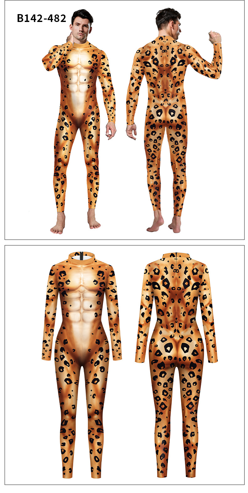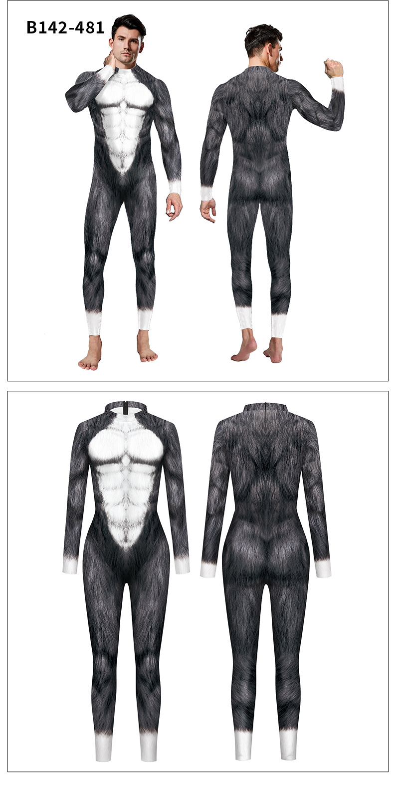 Men's Animal Cosplay Costume with Digital Print and Floral Embroidery