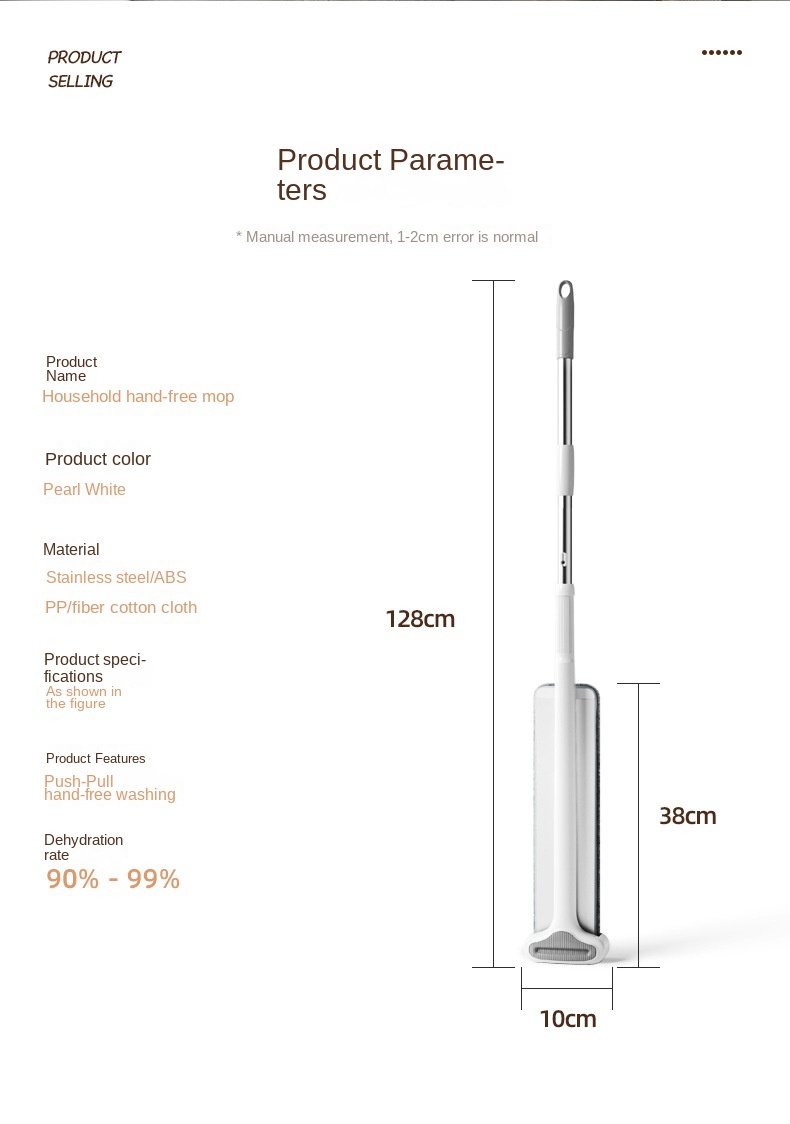 Stainless Steel Mop, 5-Year Durability, 36/38CM Size, Suitable for 10-Level Cleaning, 30KG Load Bearing, 90%-100% Water Absorption, Scrubbing Mop with Handle